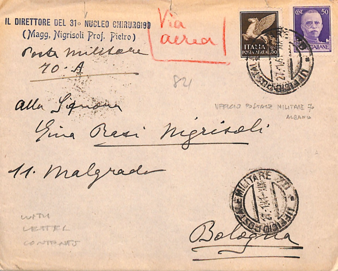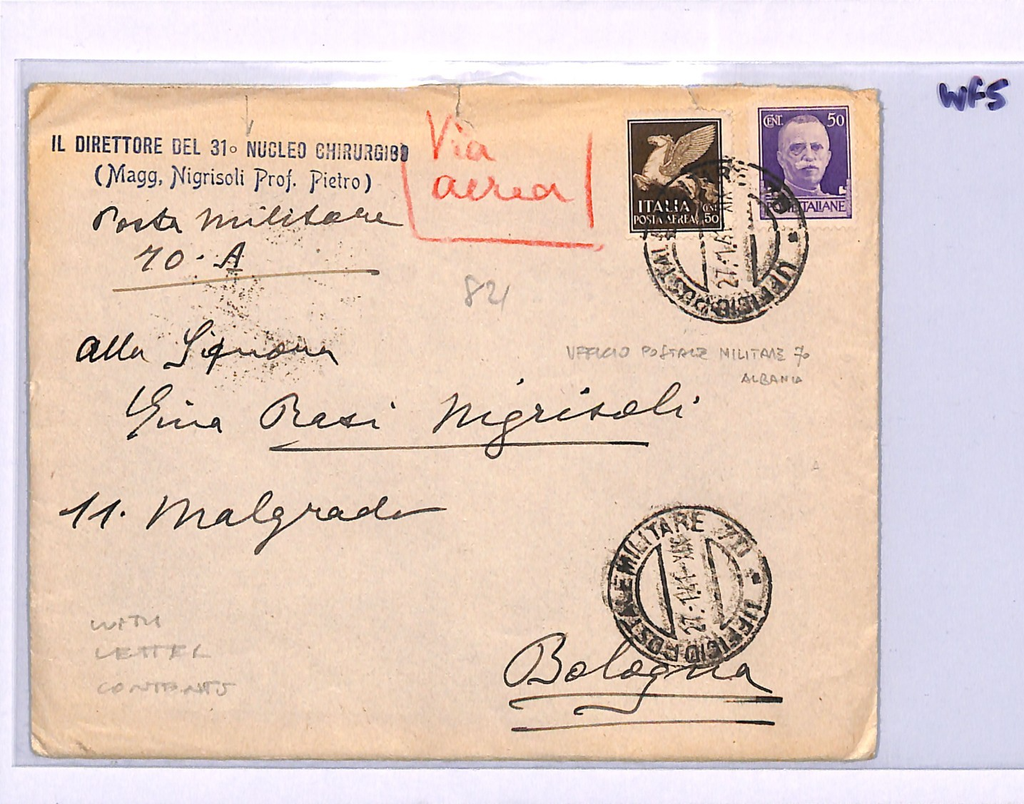 ITALY ALBANIA Occupation WW2 Cover FPO SURGICAL UNIT Contents 1941 Bologna WF5