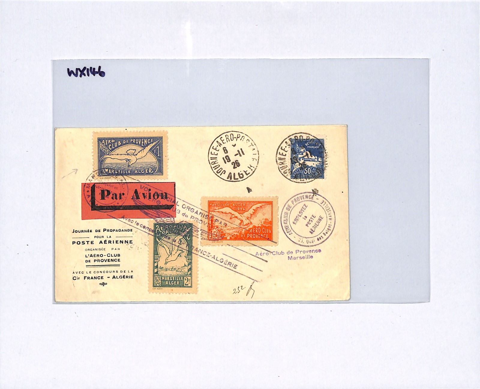 ALGERIA FRANCE Air Mail Cover AERO-CLUB PROVENCE Algiers Marseilles 1926 PROPAGANDE POST AERIENNE WX146