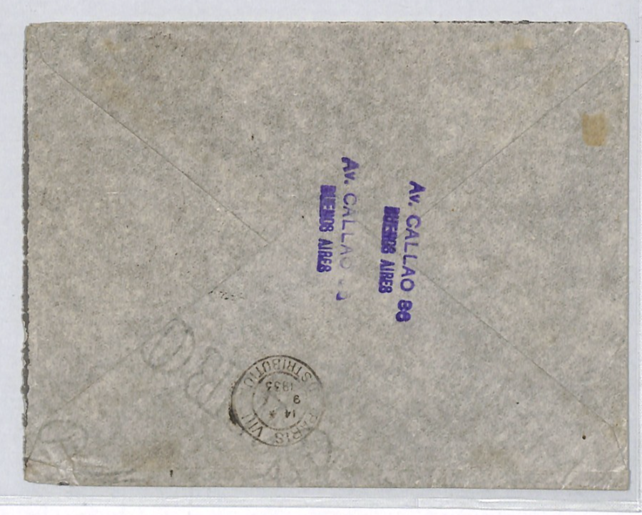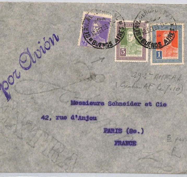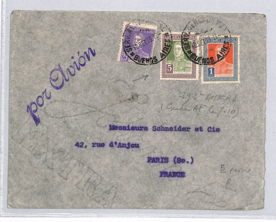 ARGENTINA Air Mail Cover 5 PESO HIGH VALUE Buenos Aires France Paris 1933 ZF304