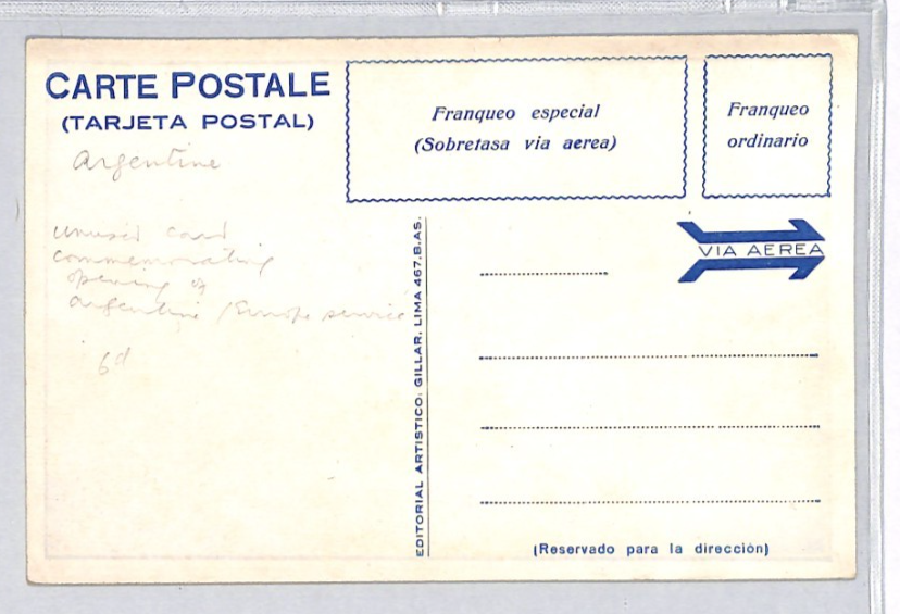 ARGENTINA Air Mail Postcard *AEROPOSTALE* FIRST FLIGHT 1928 EUROPE Unused ZF342