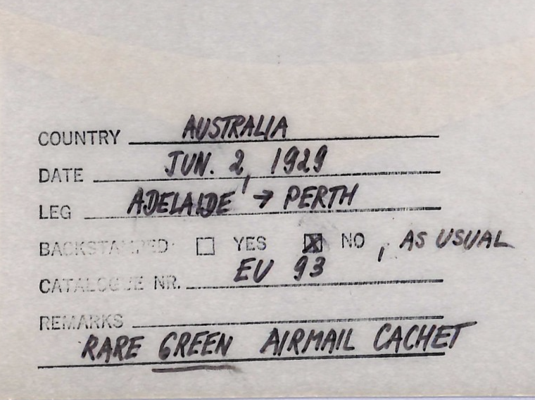 AUSTRALIA Air Mail Cover 1929 FIRST FLIGHT Adelaide Perth Rare Green Cachet WT50