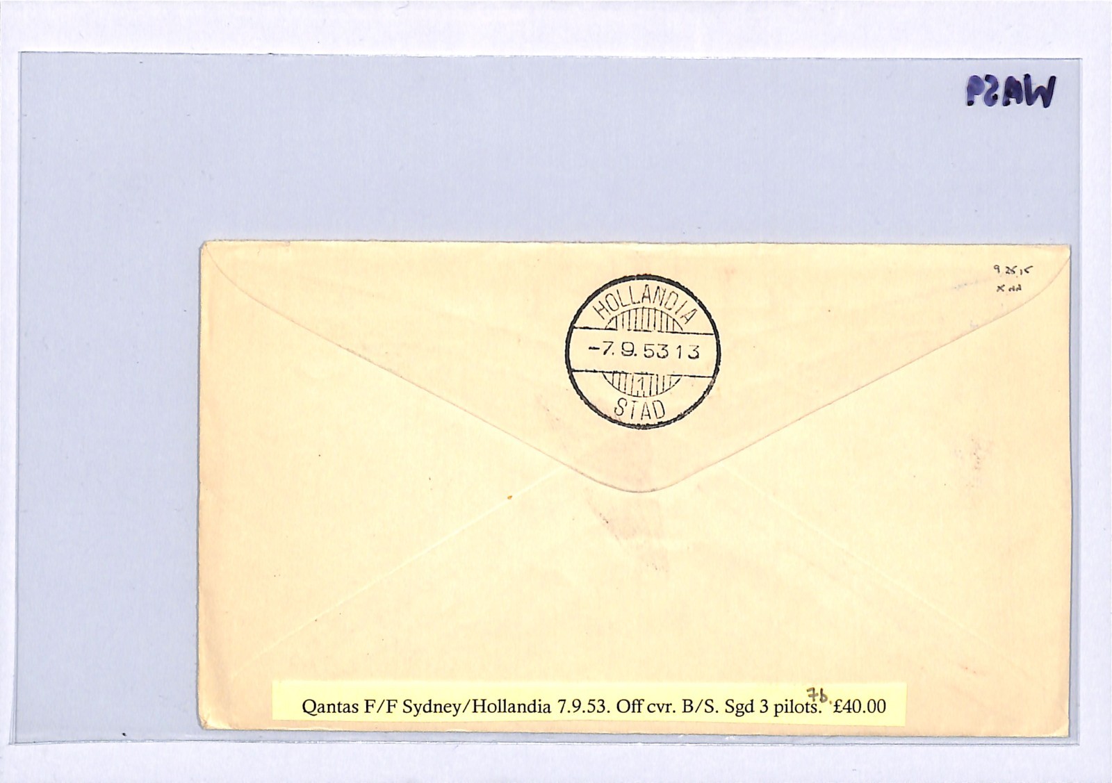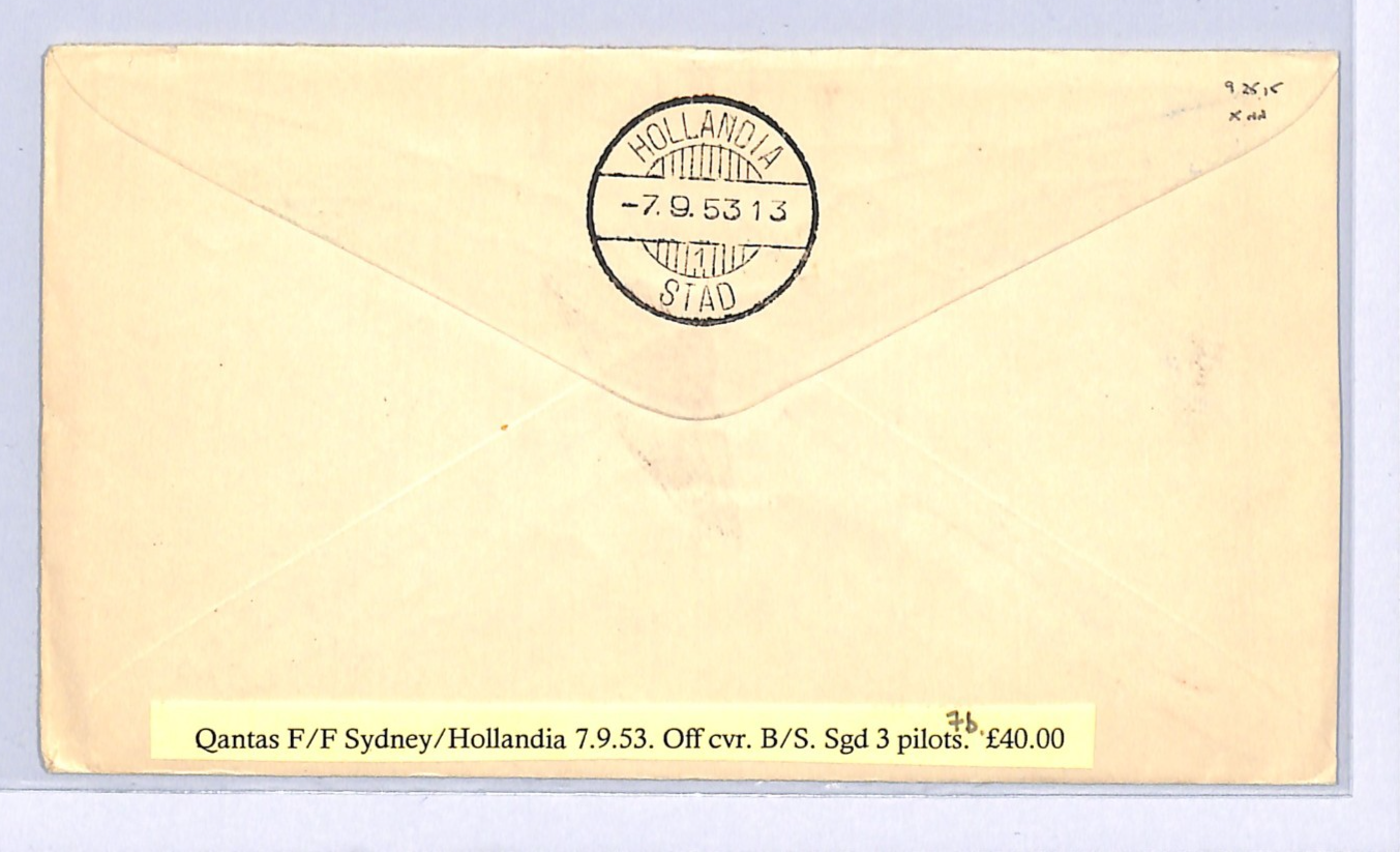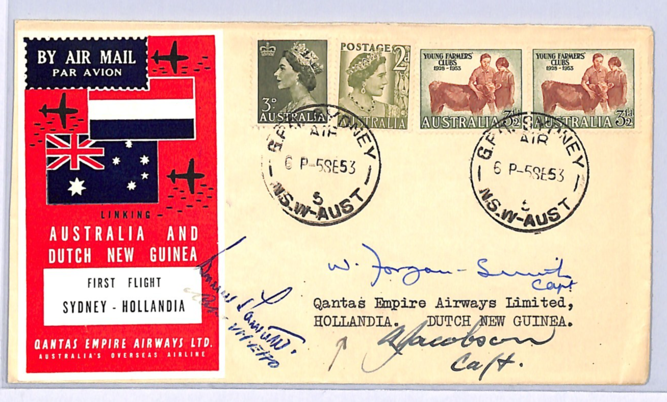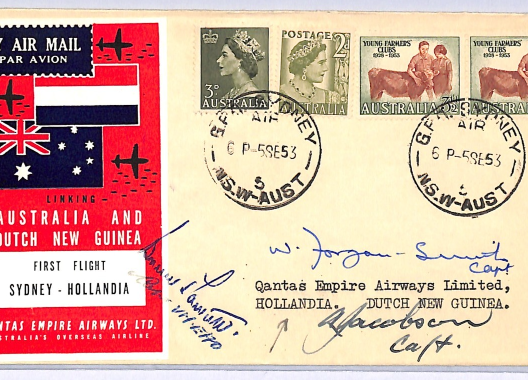 AUSTRALIA Air Mail QANTAS FIRST FLIGHT 1953 DUTCH NEW GUINEA Hollandia Pilot Signed Sydney WA59