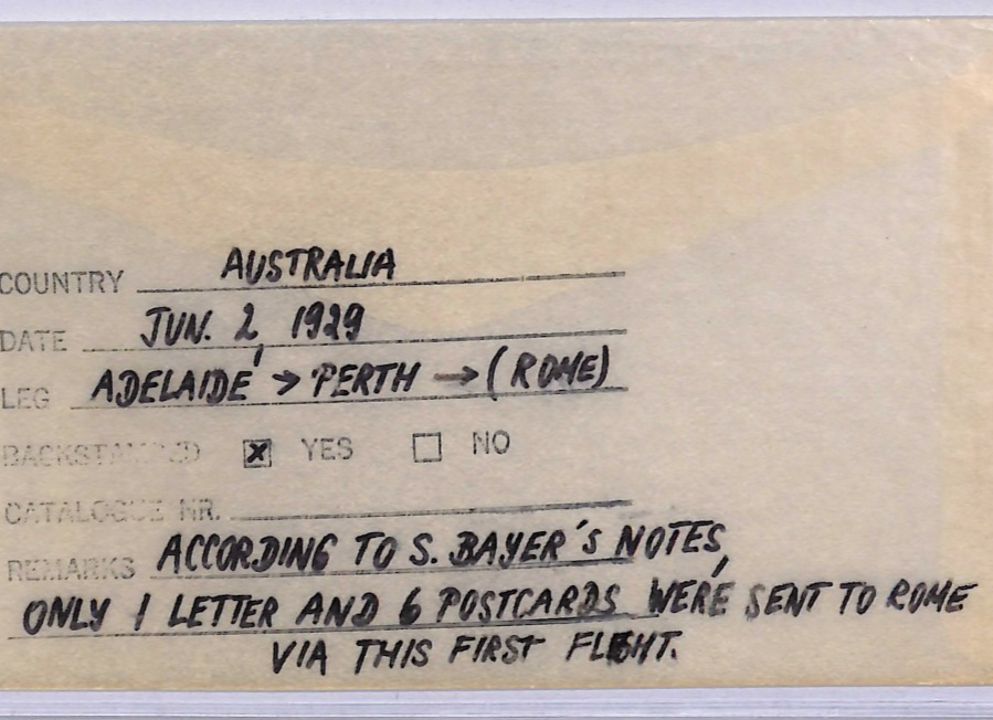 AUSTRALIA Card 1929 FIRST TRANSCONTINENTAL FLIGHT Air Mail ITALY Bayer Rare WT51