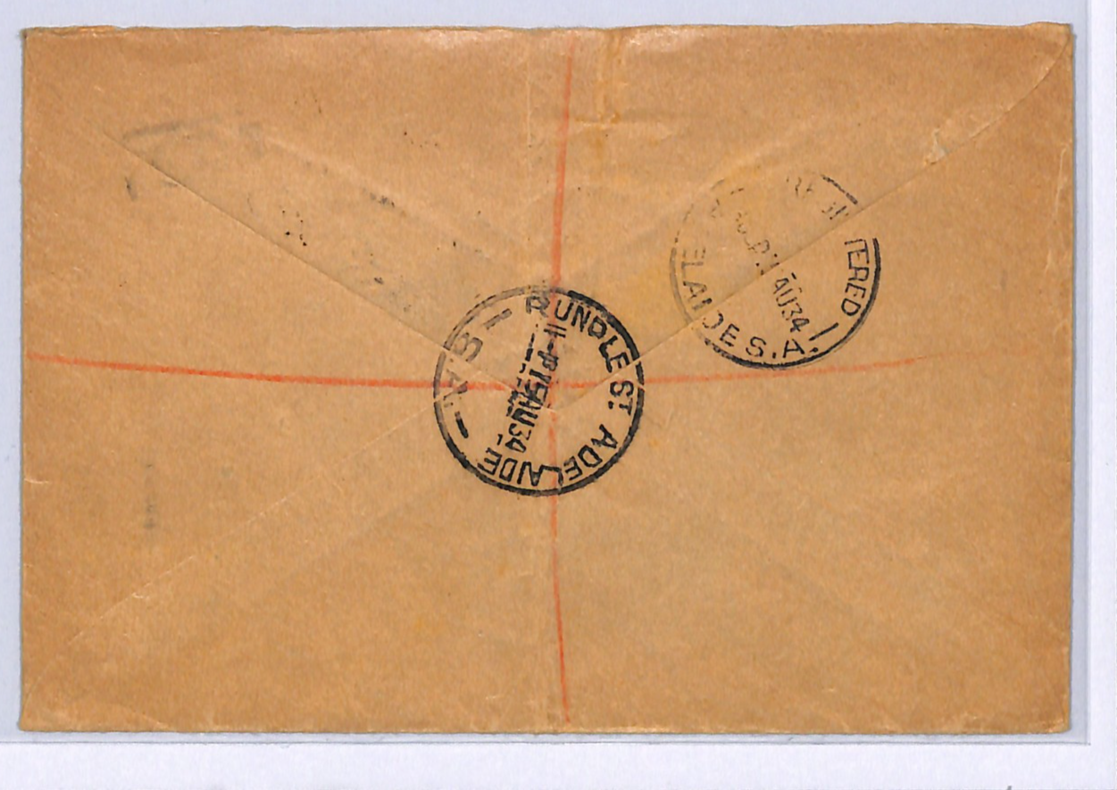 AUSTRALIA Cover *DUNDLE ST* Adelaide Registered GB London 1934{samwells}WM286