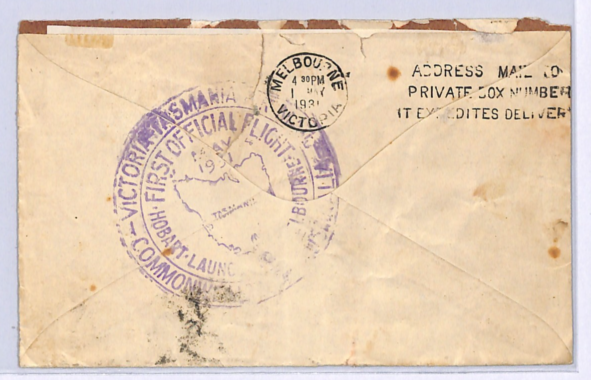 AUSTRALIA Air Mail Cover FIRST FLIGHT Tasmania Launceston Melbourne EXPRESS 1931 WM248