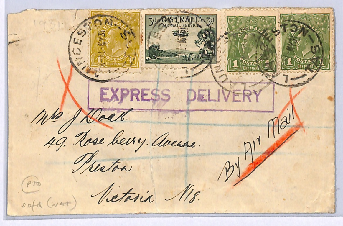 AUSTRALIA KGV Air 1931 Cover FIRST FLIGHT Tasmania *EXPRESS DELIVERY* Vic WM248
