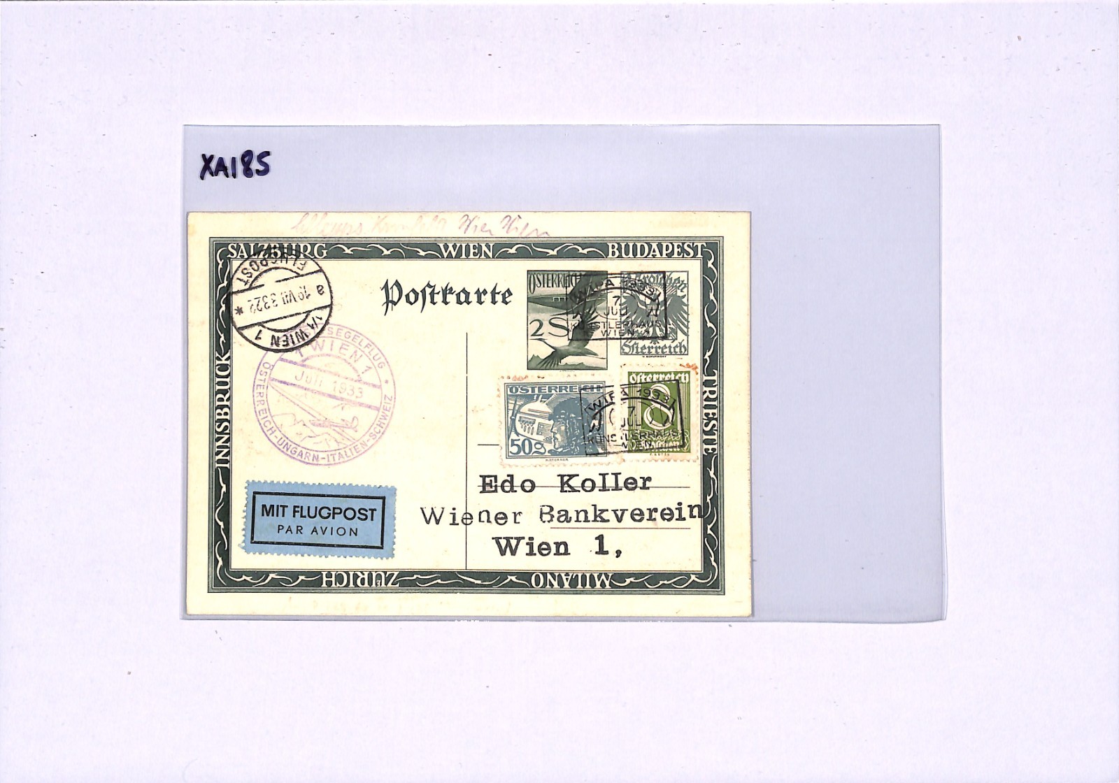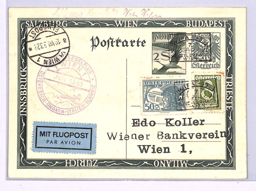 AUSTRIA GLIDER 1 FLIGHT Air Mail Card WIPA 1933 SEGELFLUG Salzburg Vienna XA185