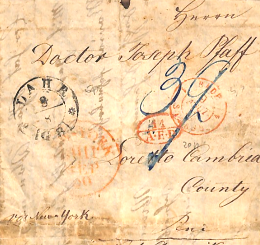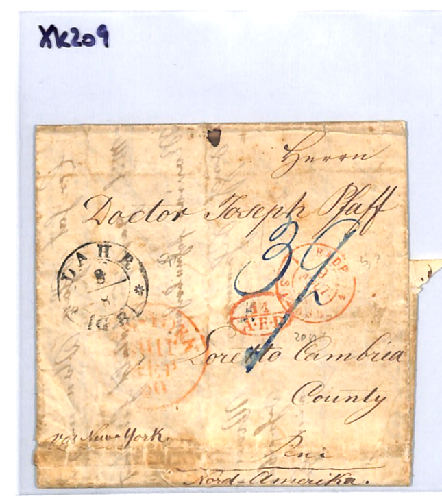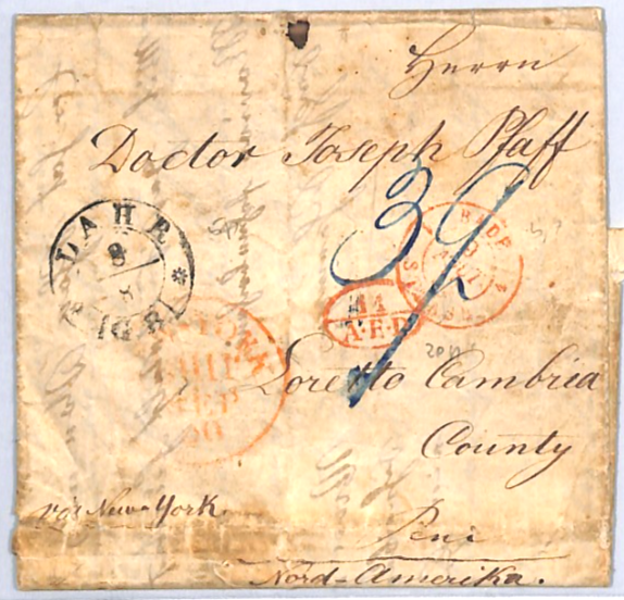GERMANY/USA TRANSATLANTIC Cover 1843 BADEN *LAHR* Entire Letter EL Loretto Cambria County PA XK209