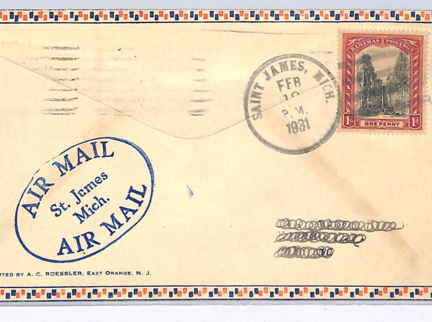 BAHAMAS/USA Mixed Franking Air Mail Cover St James MI Lakehurst 1931 WX102
