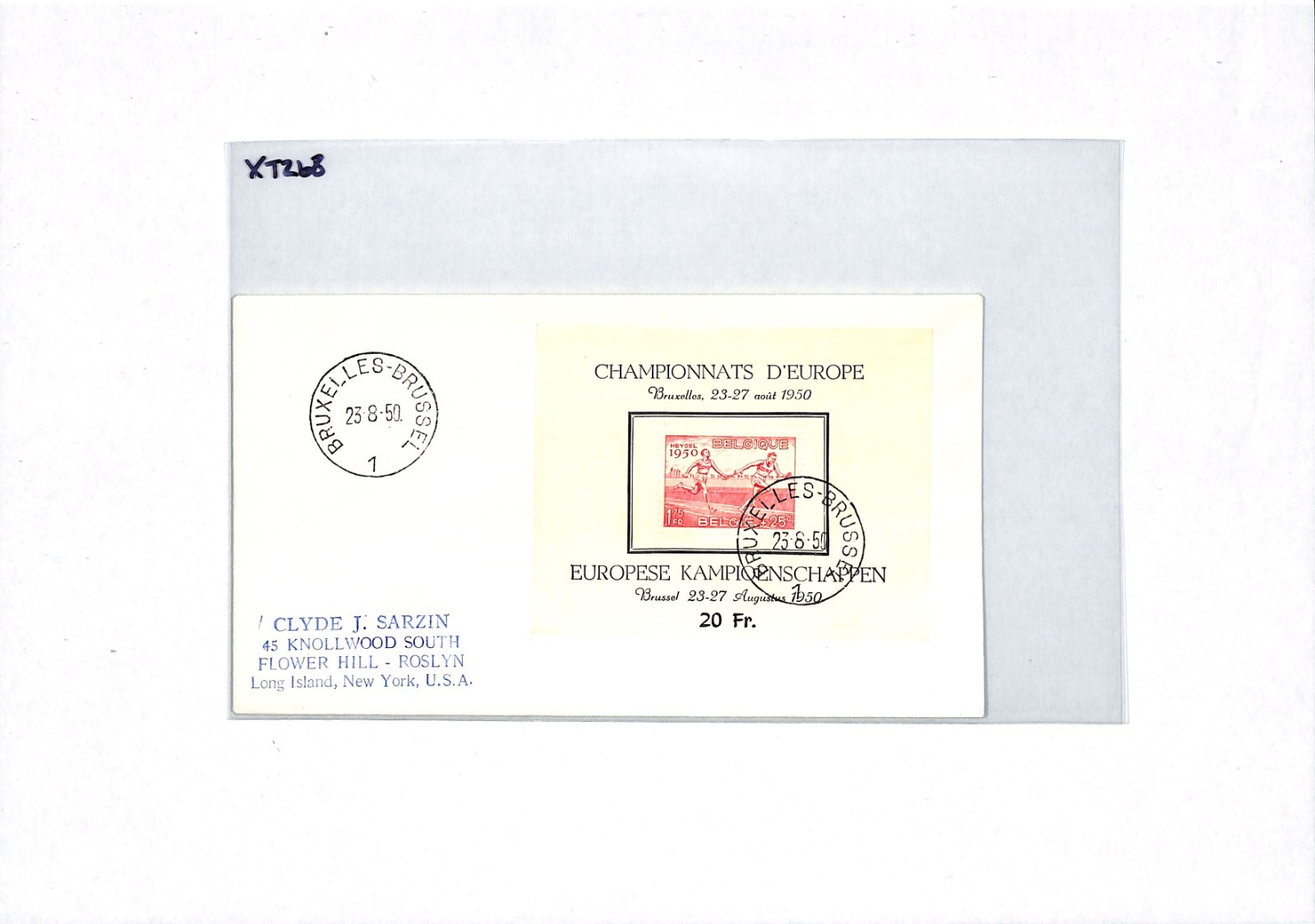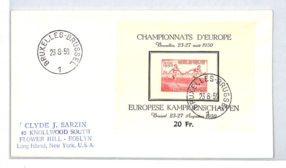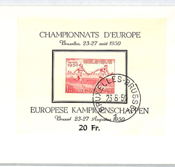 BELGIUM 1950 FDC HEYSEL SPORT European Championship *MINI-SHEET* Athletics XT268