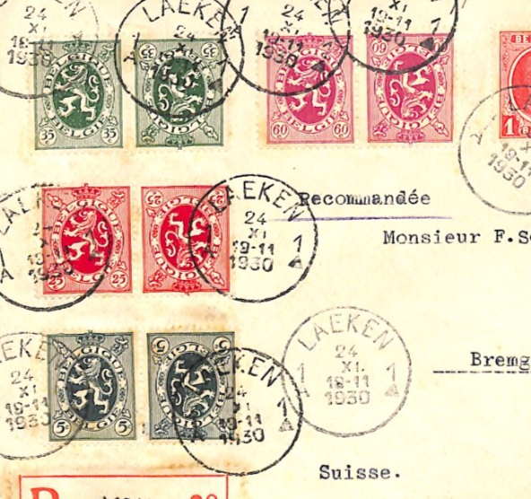 BELGIUM Cover *TETE-BECHE PAIRS*{5} FRANKING Laeken Reg 1930 Swiss Mail XT265