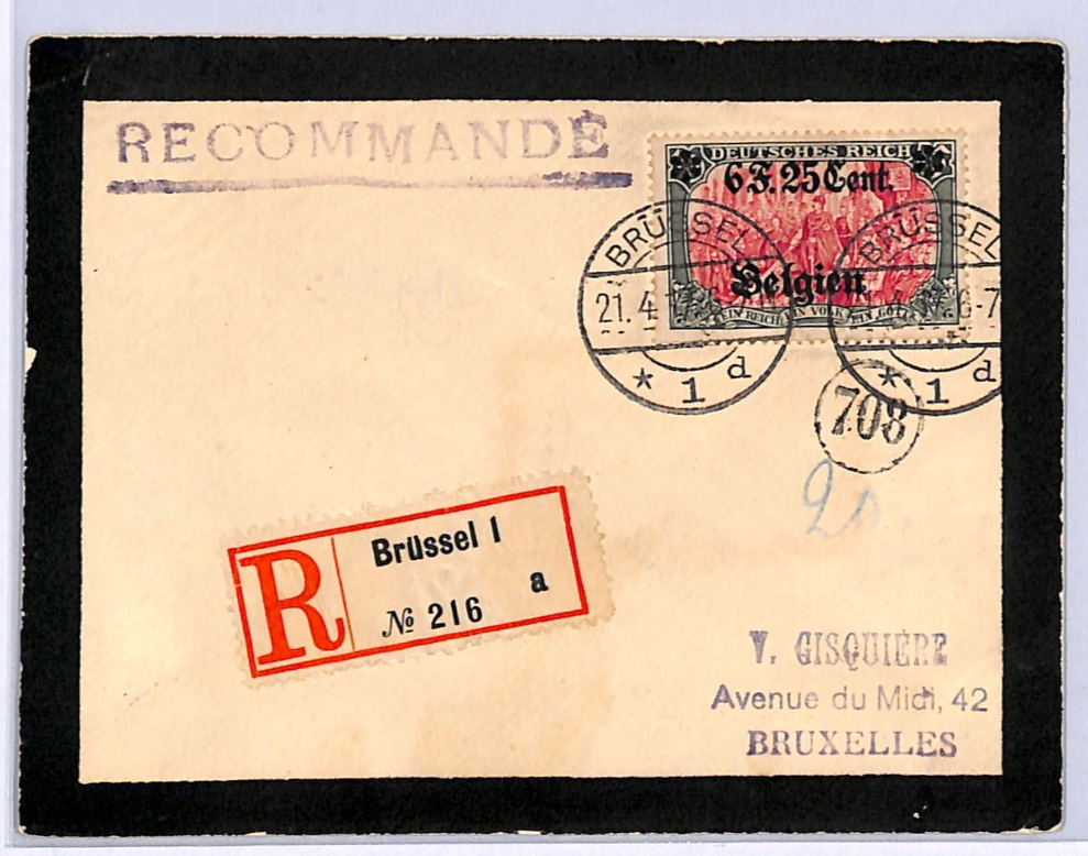 GERMANY BELGIUM WW1 OCCUPATION Cover 1917 Brussels Registered {samwells}WF258