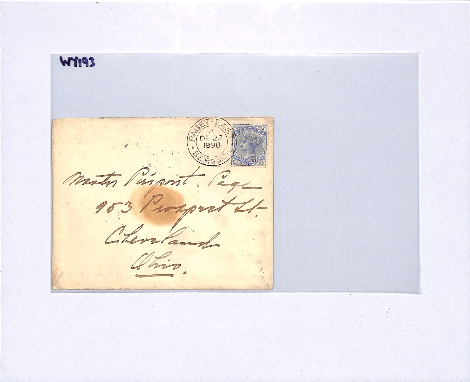 BERMUDA Cover *PAGET EAST* CDS USA OH Cleveland 1898{samwells-covers}WY193