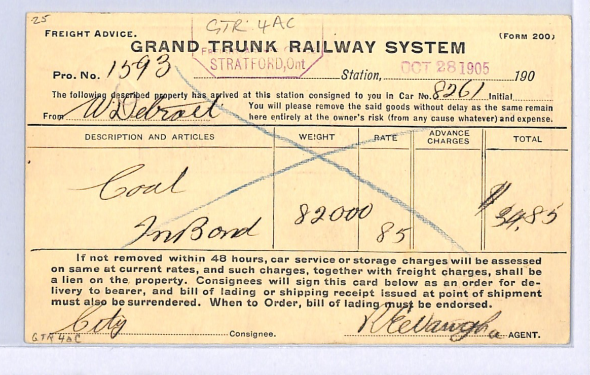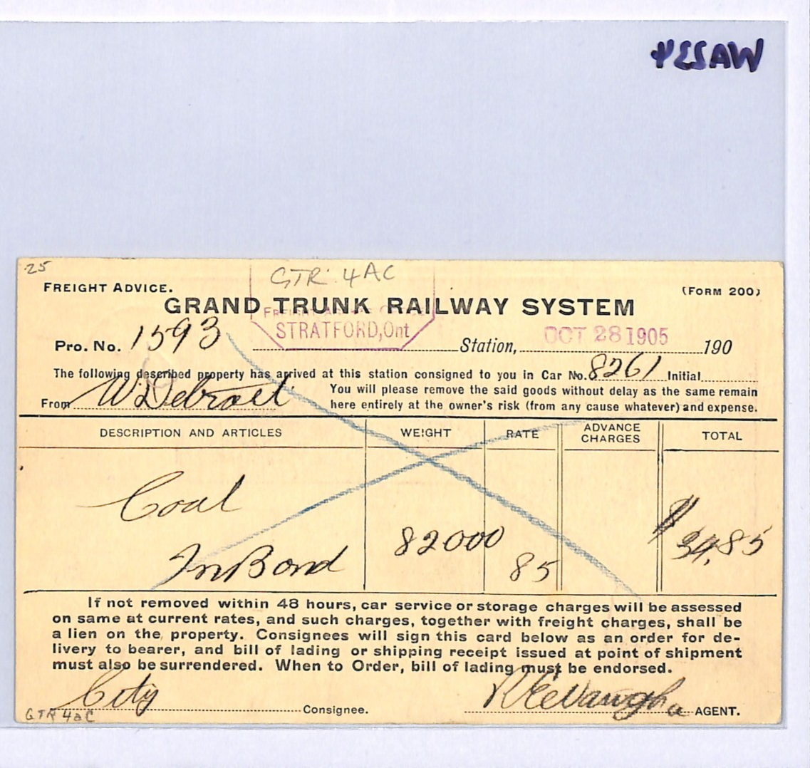 Canada GRAND TRUNK RAILWAY KEVII Card Kawartha Super *STRATFORD* 1905 CDS WA234