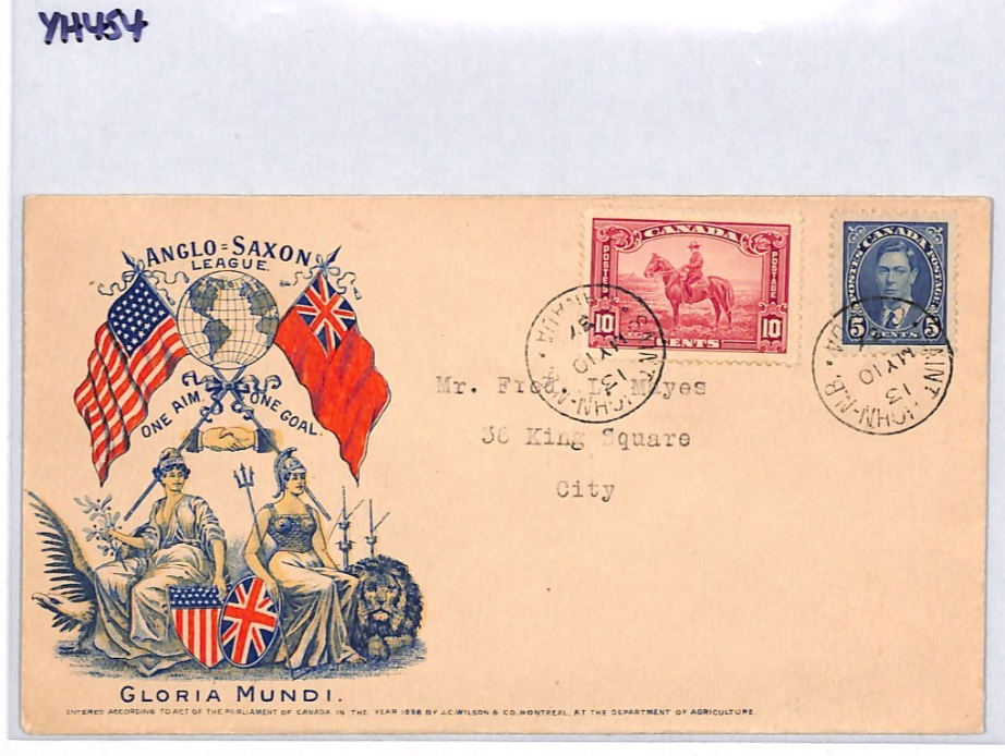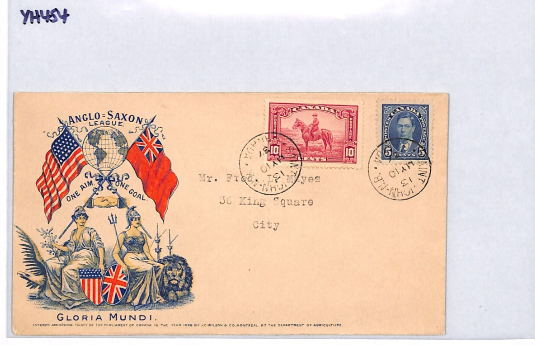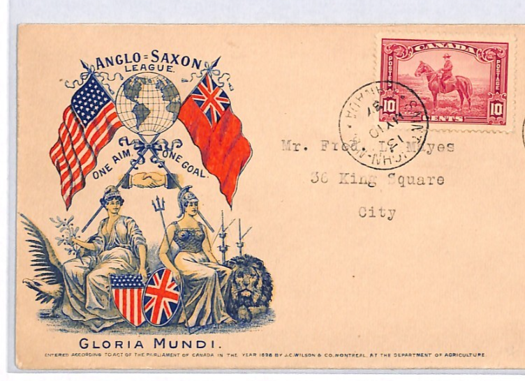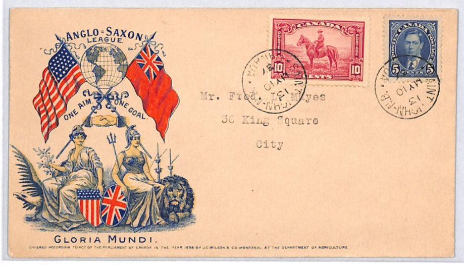 CANADA KGV 10c RCMP Cover PATRIOTIC ILLUSTRATED *Anglo-Saxon League* 1937 YH454
