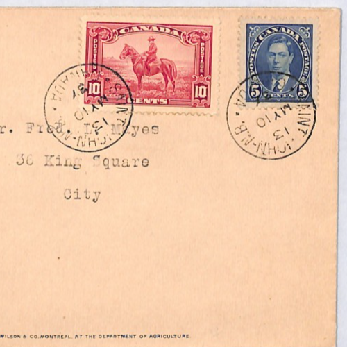 LOVELY USAGE of the 1935 issue 10c ROYAL CANADIAN MOUNTED POLICE stamp. MOST ATTRACTIVE. Very Fine for an item of this type & period. Please look at all the scans to help form your own opinion. Offered & sold with all faults considered (WAF).