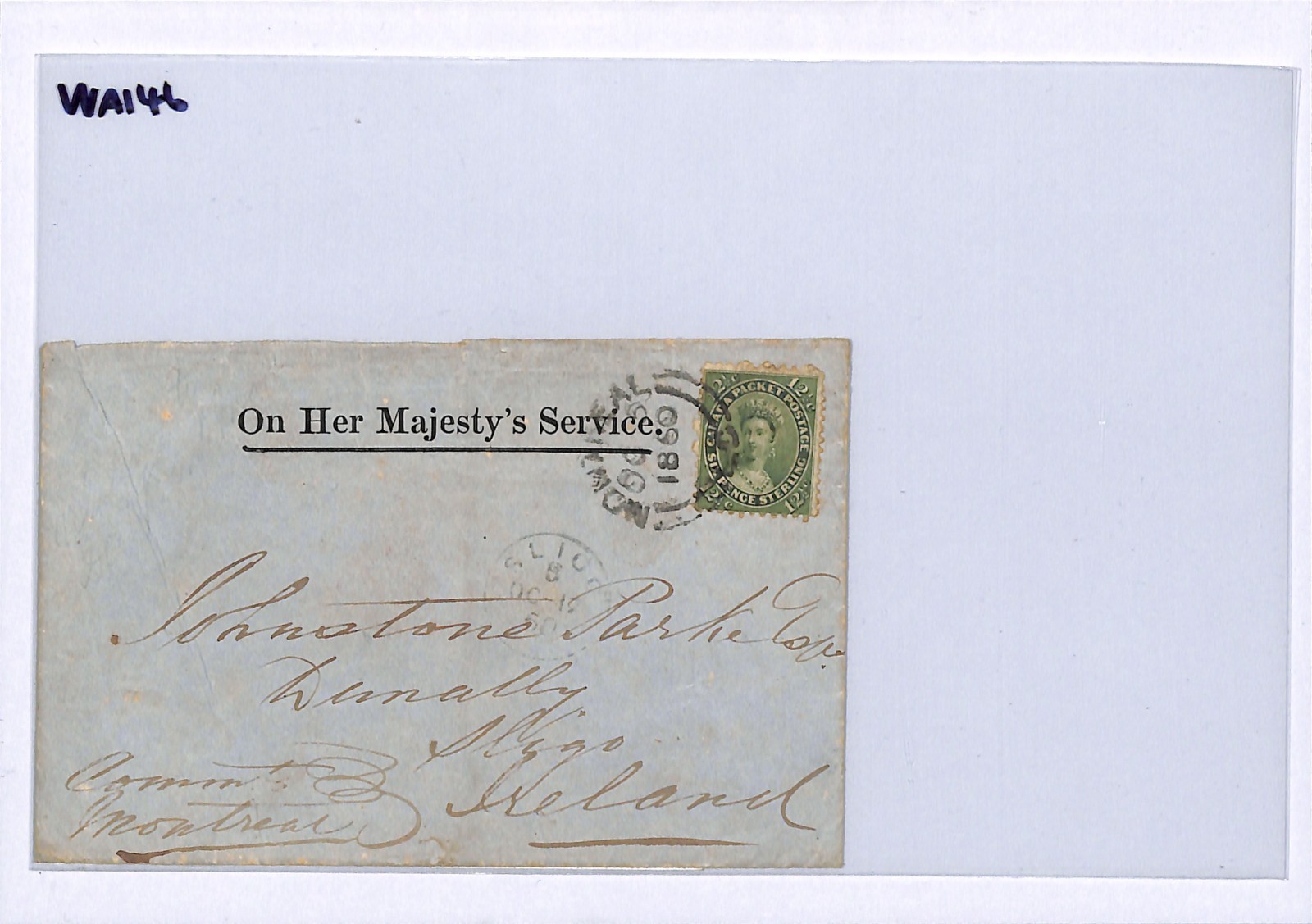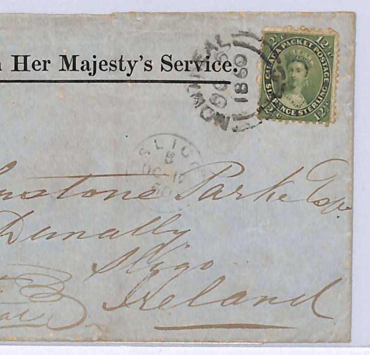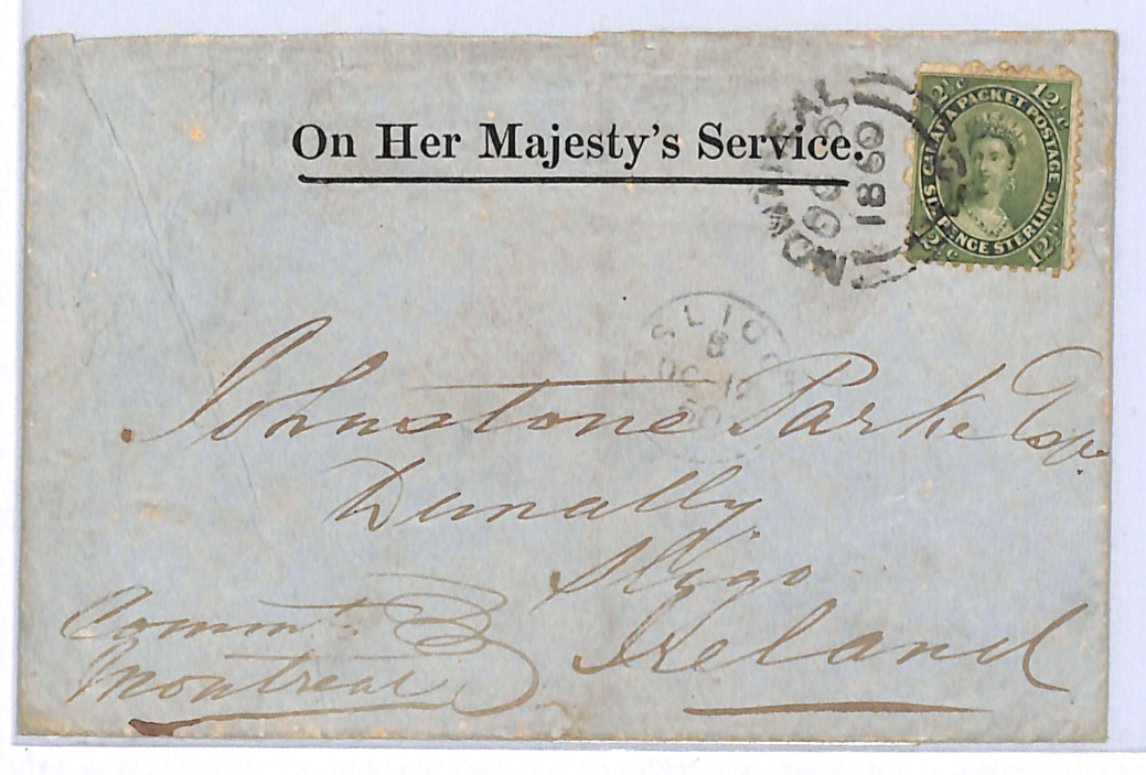 CANADA (COLONY) OHMS Official Classic Cover QV 6d/12½c CHALON Super Montreal CDS Transatlantic 1860 Sligo Ireland WA146