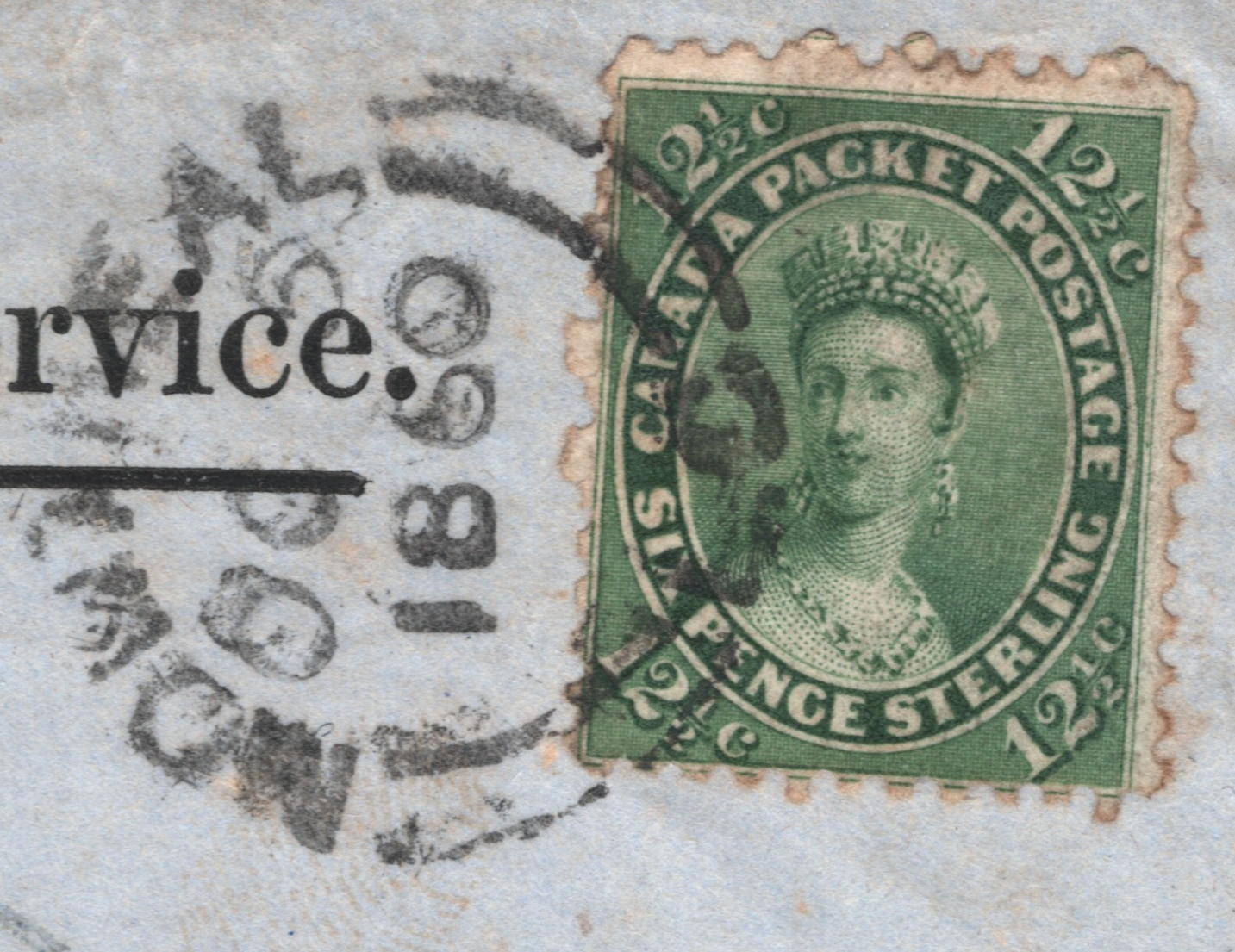 CANADA Official Cover QV 6d/12½c CHALON Super CDS Transatlantic 1860 Sligo WA146