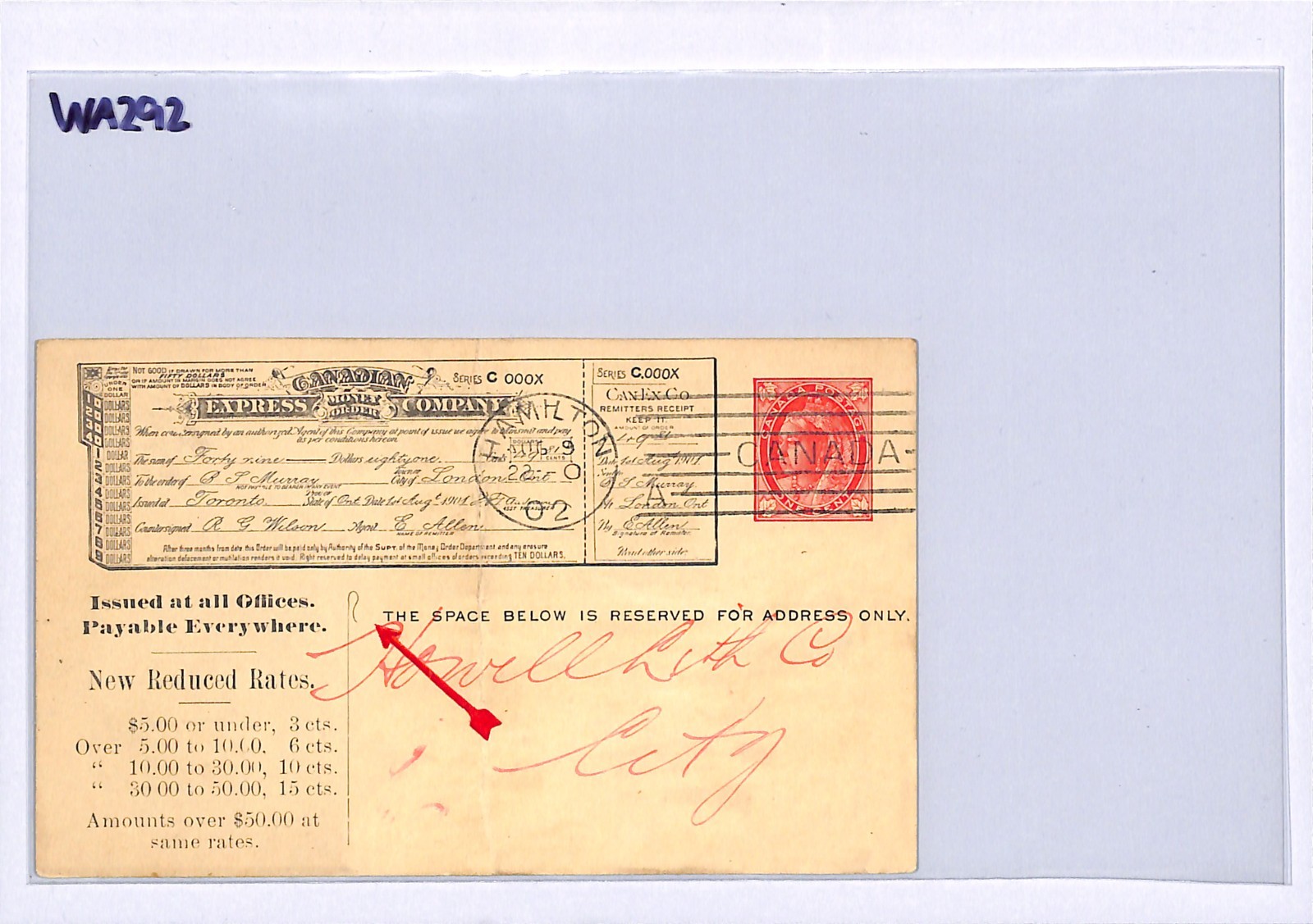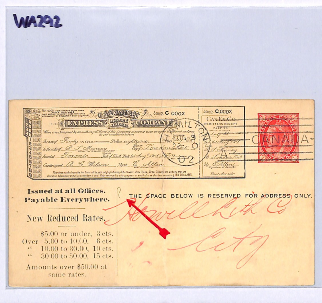 CANADA QV Advert Stationery Card *CANADIAN EXPRESS* Hamilton Ontario 1902 WA292