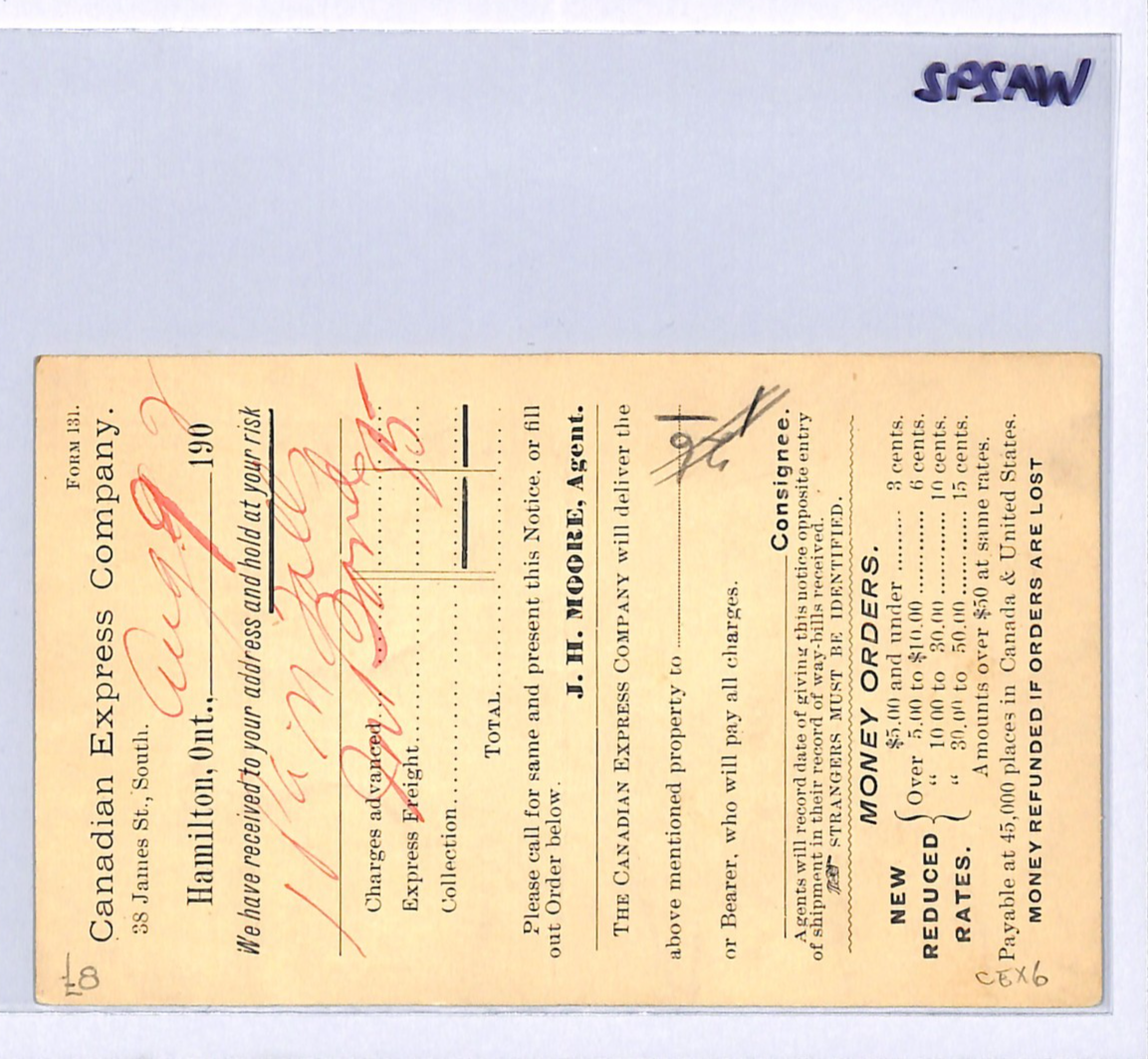 CANADA QV Advert Stationery Card *CANADIAN EXPRESS* Hamilton Ontario 1902 WA292 VERTICAL BEND