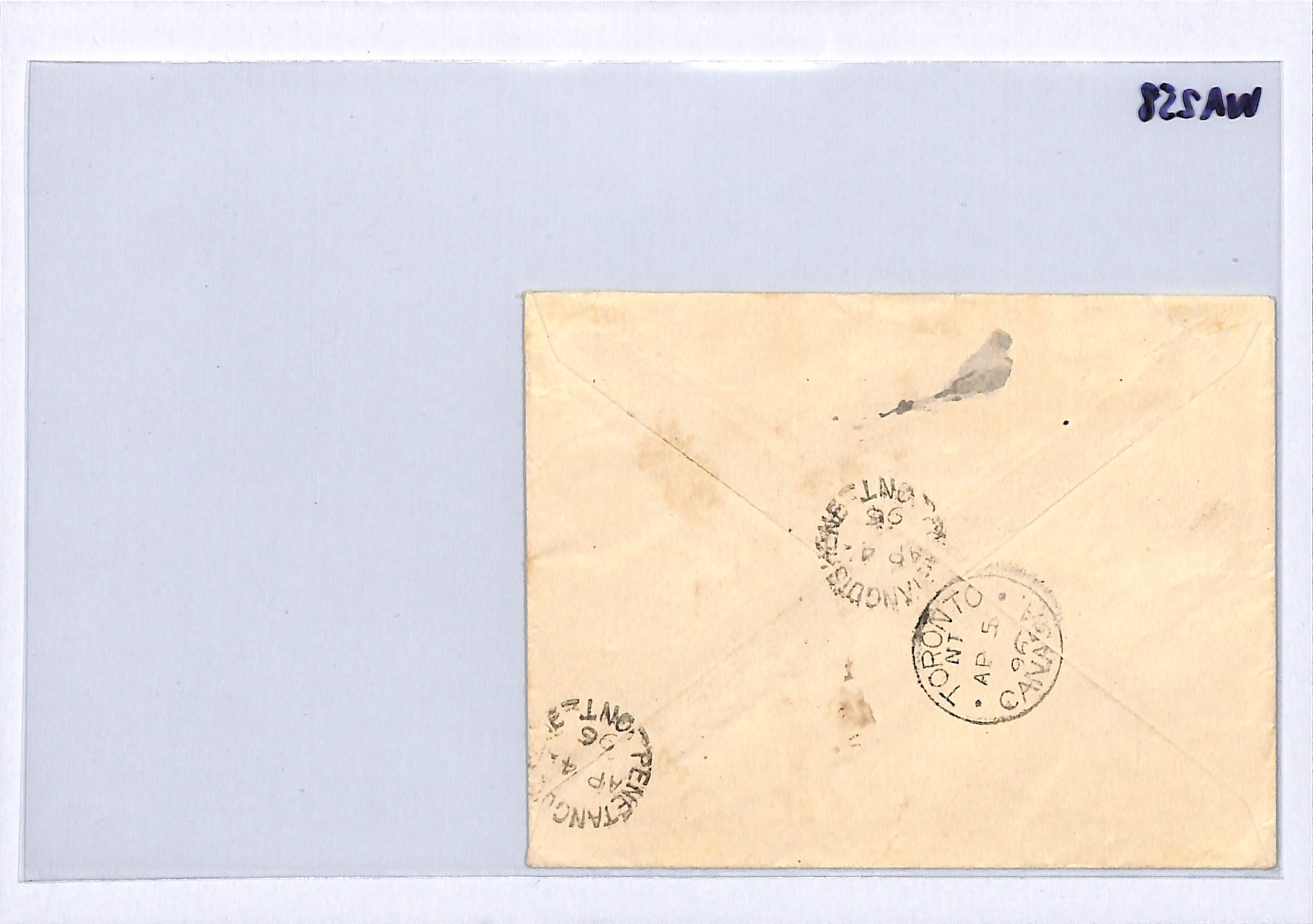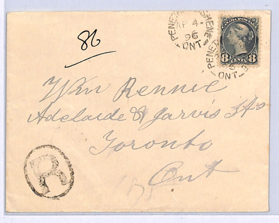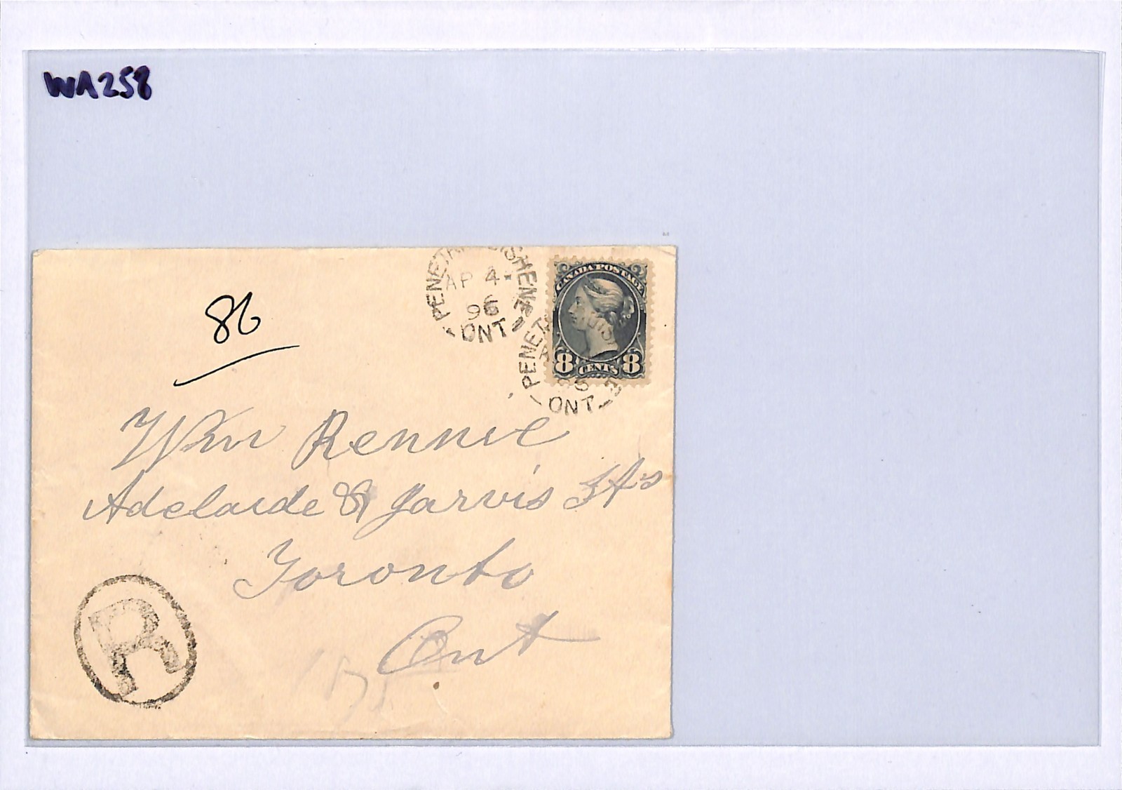 CANADA QV Cover Ontario *Penetanguishene* Registered Toronto 1896 WA258