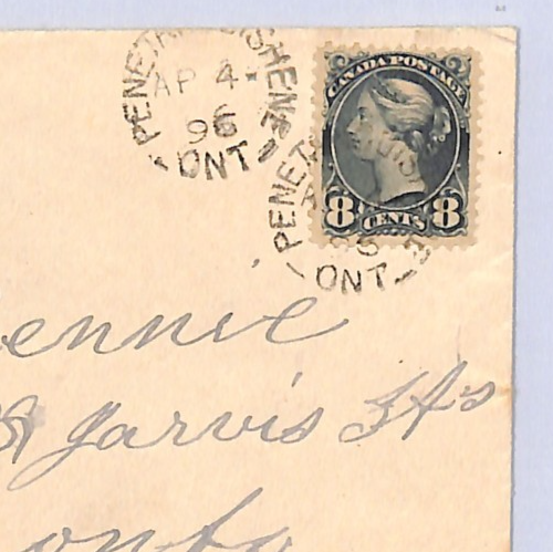 CANADA QV Cover 8c QUEEN (SMALL) Ontario *Penetanguishene* Registered 1896 WA258