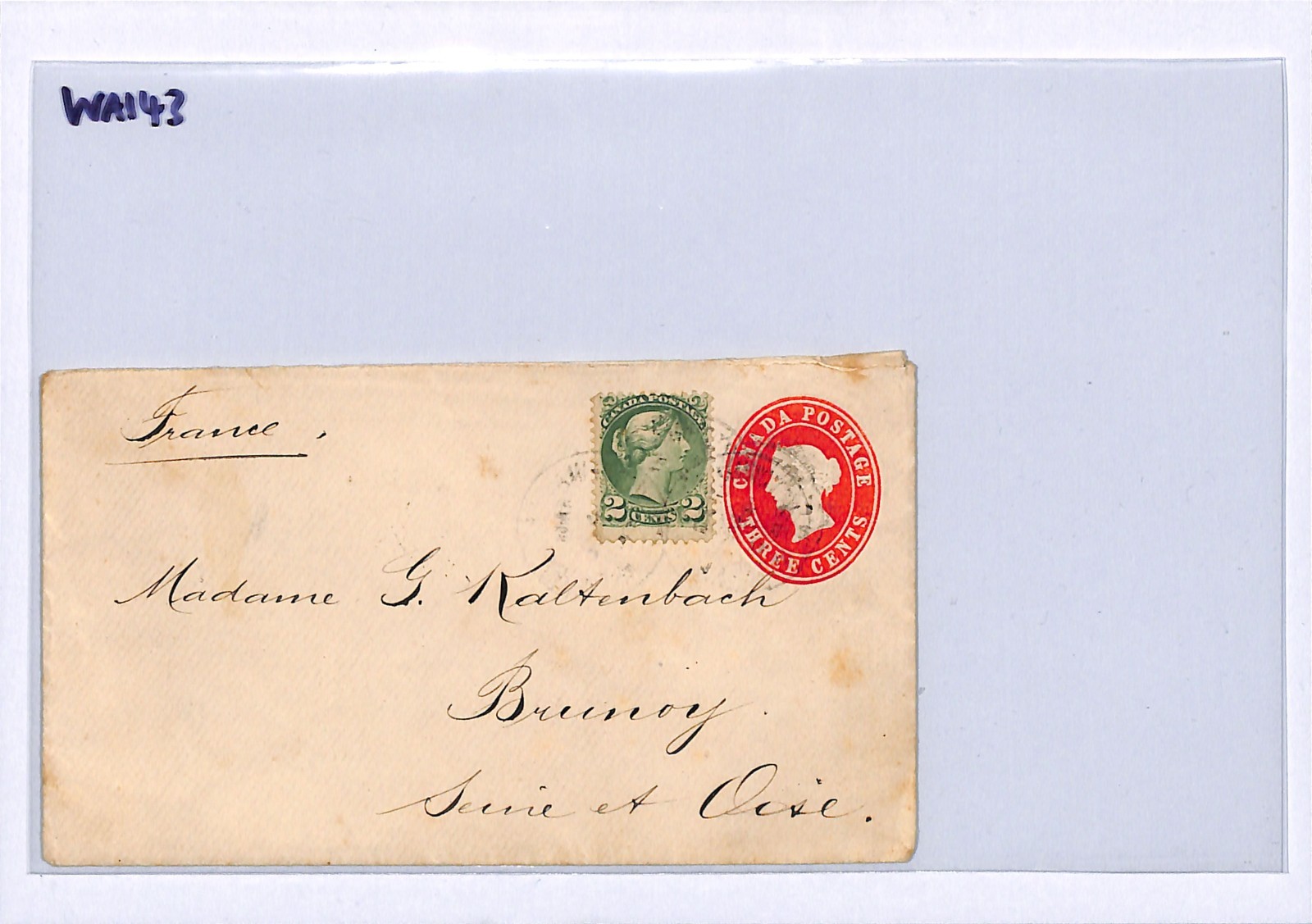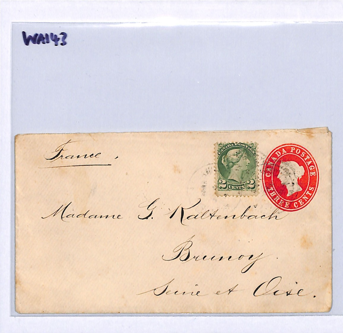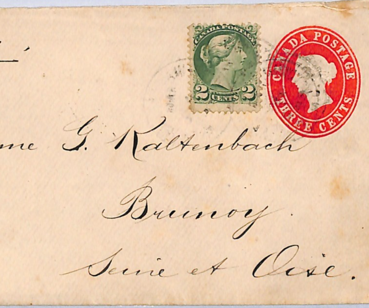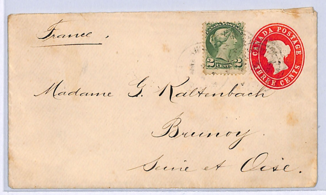 CANADA QV MIXED FRANKING Stationery 3c QUEEN Cover 1895 TRANSATLANTIC Mail Toronto FRANCE Brunoy {samwells}WA143