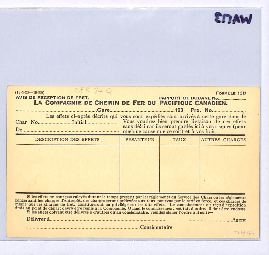 SUPER ITEM. Scarce *FRENCH LANGUAGE* Printing on reverse. MOST ATTRACTIVE. Extremely Fine for an item of this type & period. Please look at all the scans to help form your own opinion (WAF).