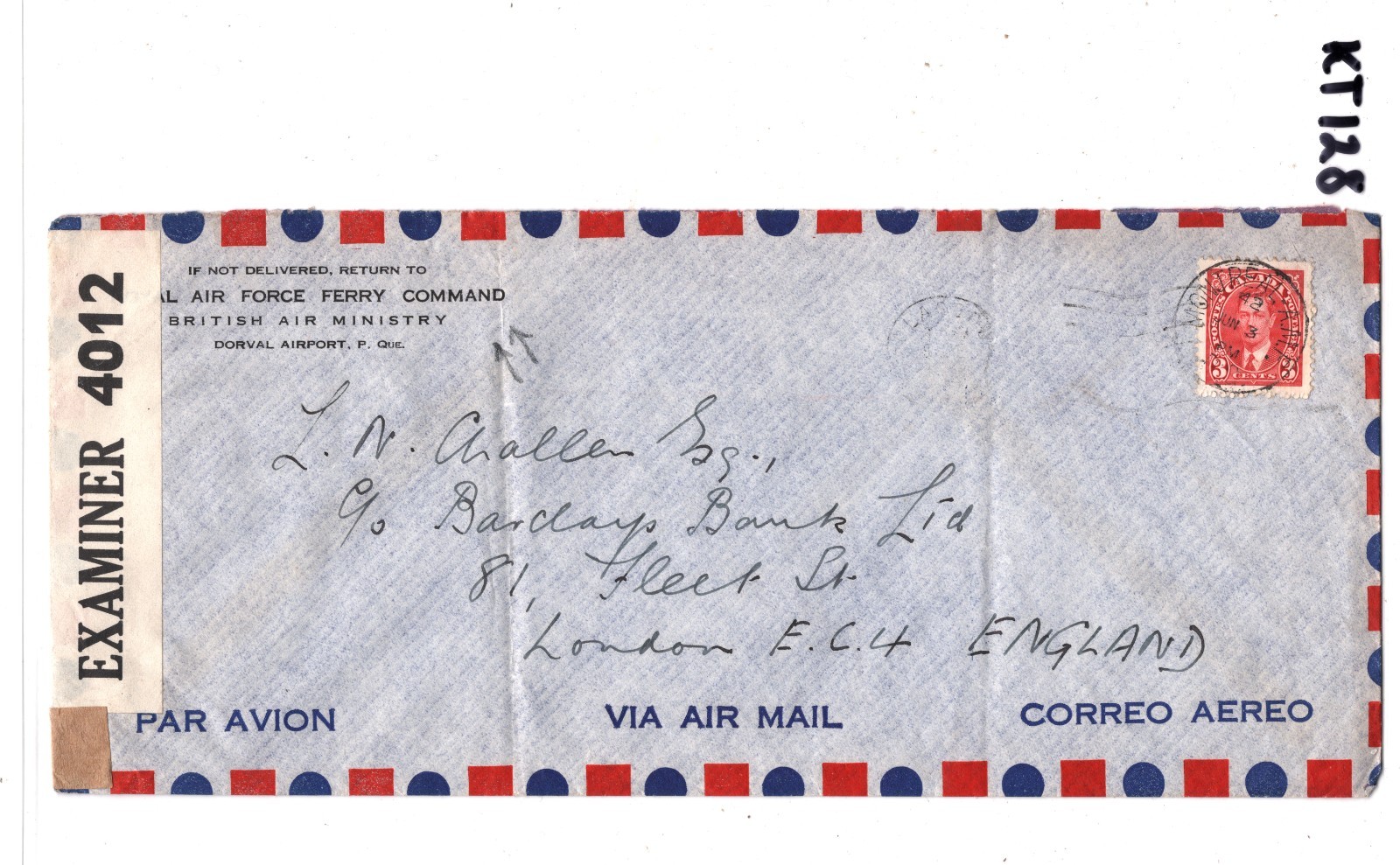 CANADA WW2 Air Cover *RAF FERRY COMMAND* Dorval QUE London 1942 Censor KT128