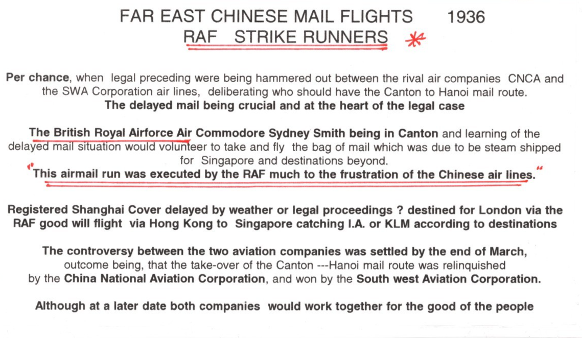 CHINA Air Cover *RAF STRIKE RUNNERS FLIGHT* Canton DELAYED 1936 London WT14