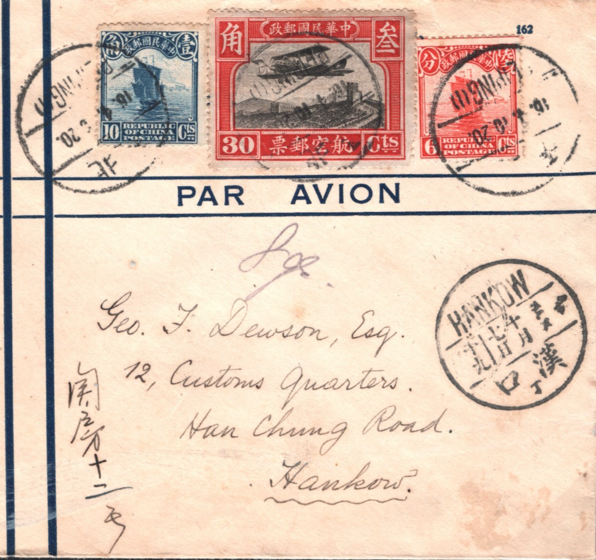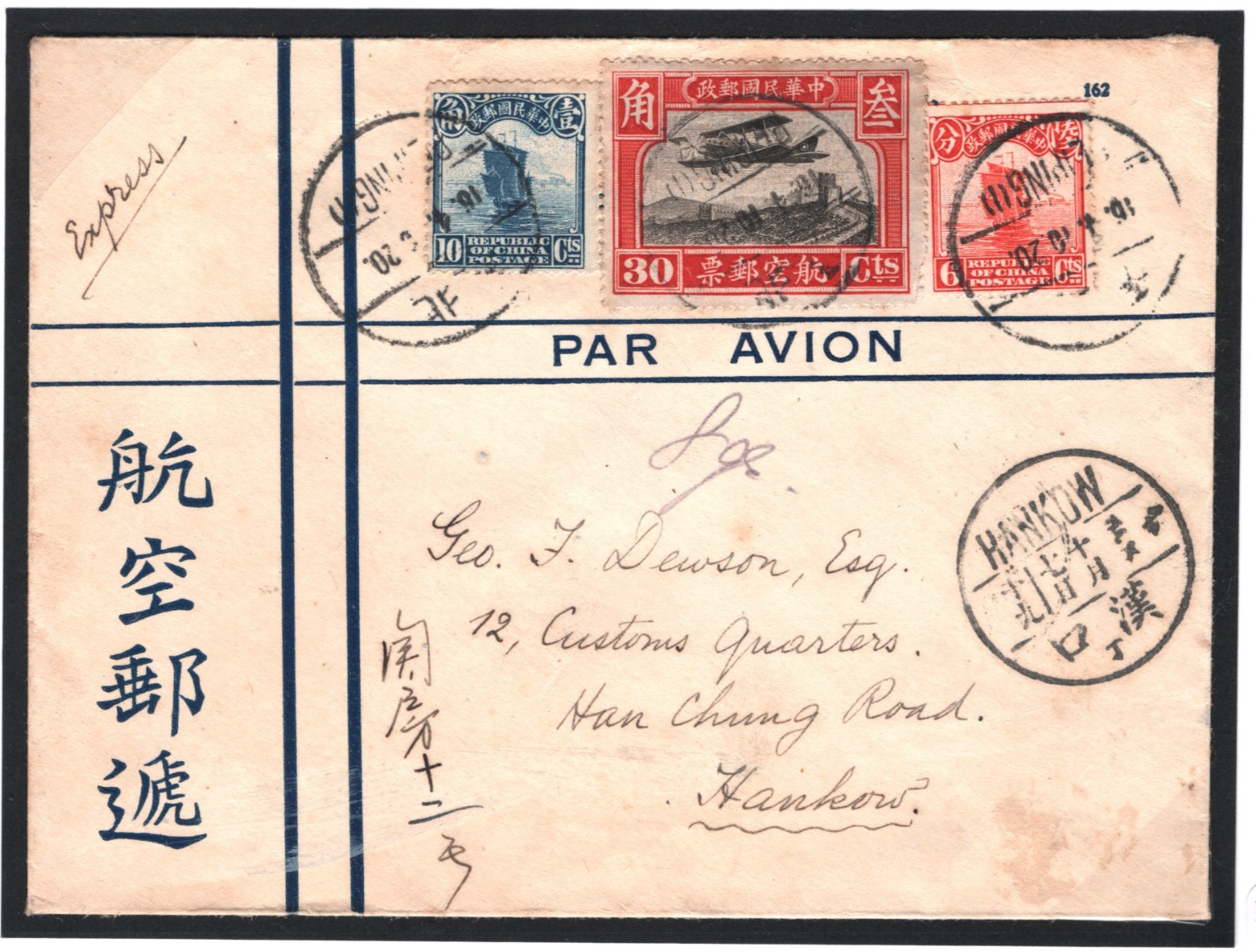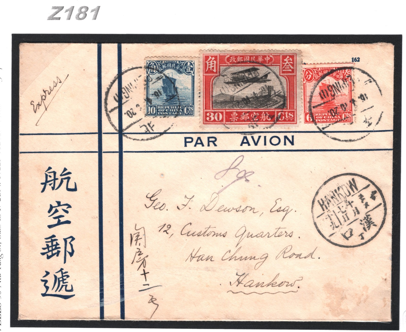 CHINA Air Mail Cover Beiping/Beijing Hankow EXPRESS 1930 {samwells-covers}Z181
