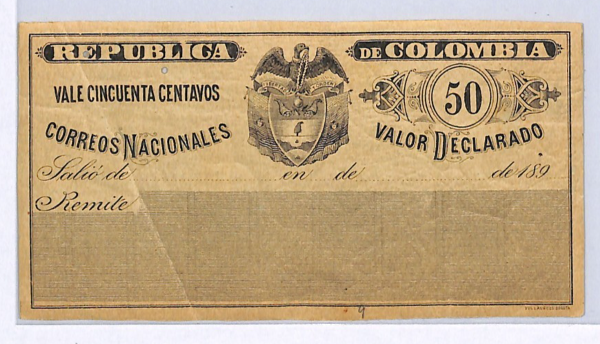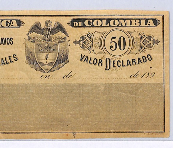 COLOMBIA 50c CUBIERTA Black/Buff *ERROR* Insured Stamp 1890s Stationery WX420