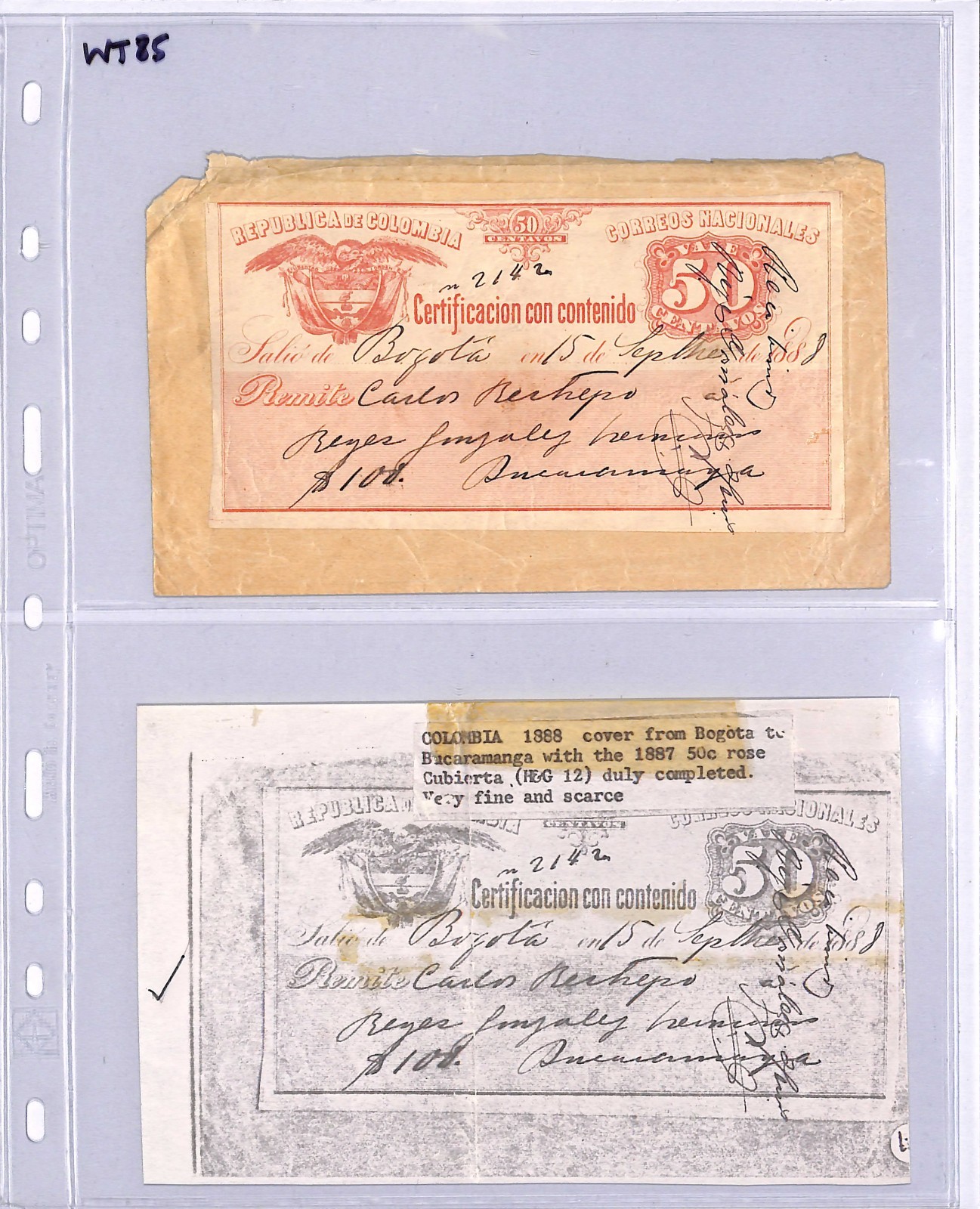 COLOMBIA Cover 50c CUBIERTA Insured Letter Stamp 1888 Stationery {Moorhouse}WT85