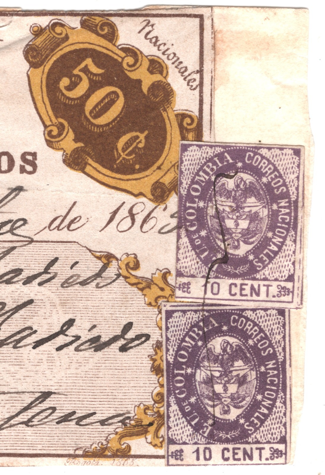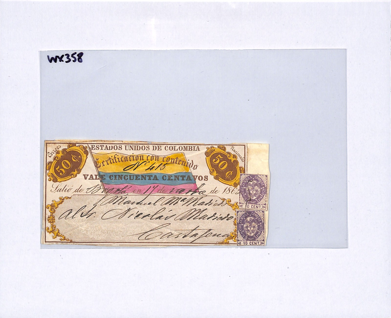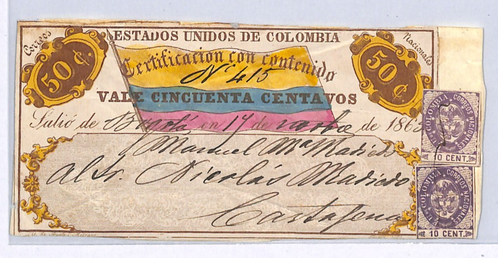 COLOMBIA Cover Front 50c FLAG CUBIERTA Used 1865? Cartagena UPRATED Stamps WX358