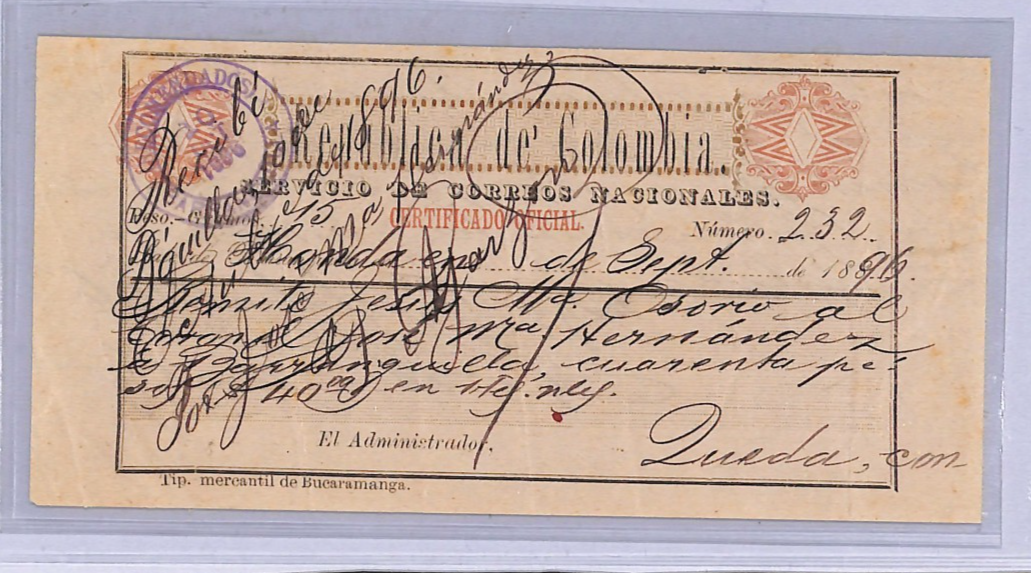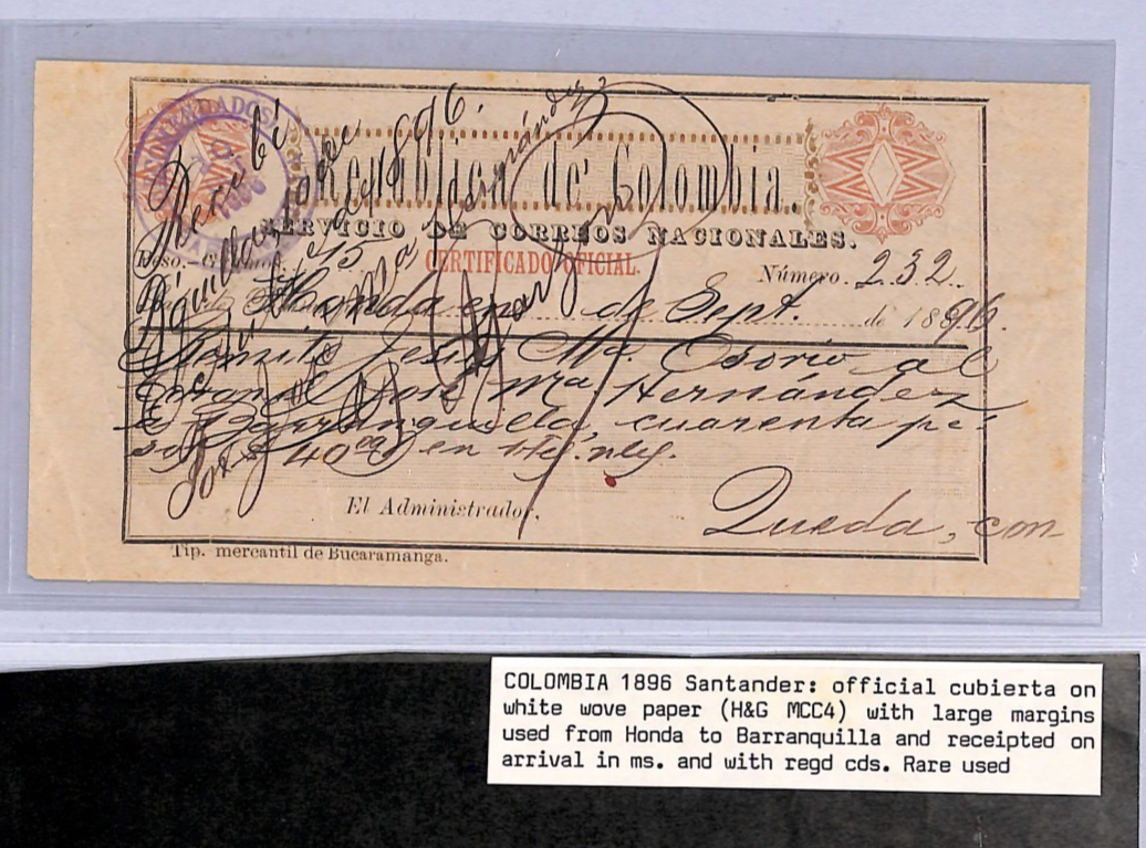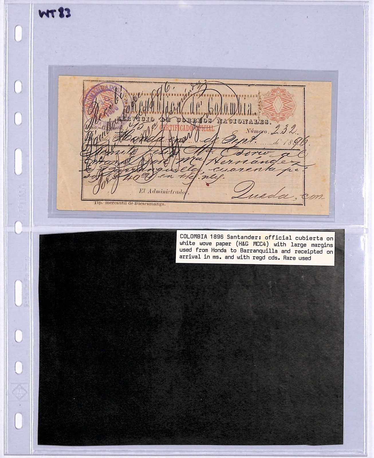 COLOMBIA (BUCARAMANGA) *Republica* CUBIERTA Official Used 1896 Rare {Moorhouse}WT83