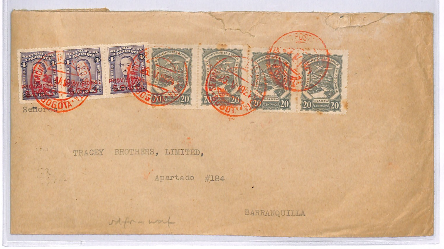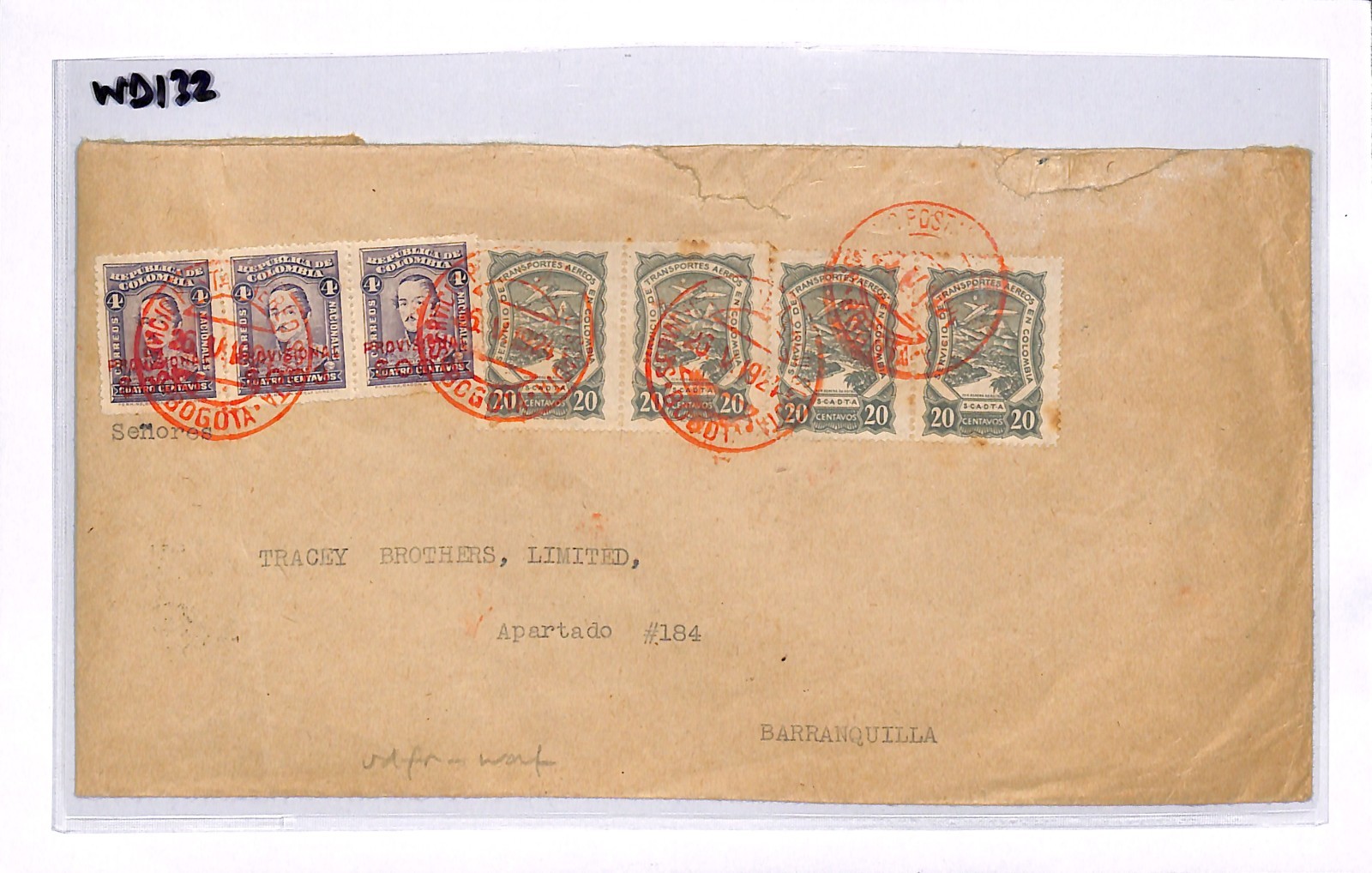 COLOMBIA *SCADTA* Air Mail 1927 Cover Bogota Barranquilla {samwells-covers}WD132