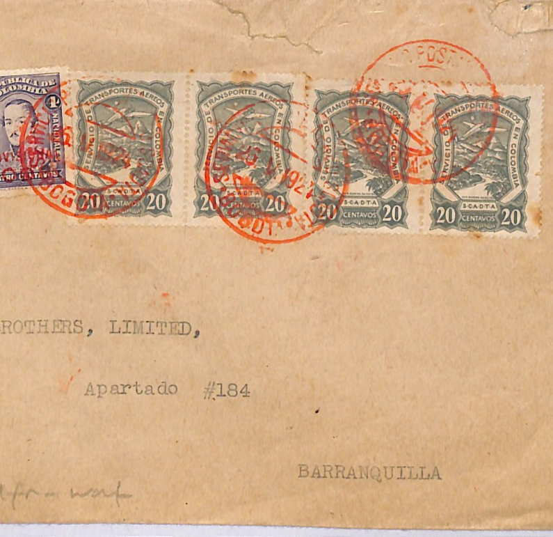 COLOMBIA SCADTA Air Mail 1927 Cover Bogota Barranquilla{samwells-covers}WD132