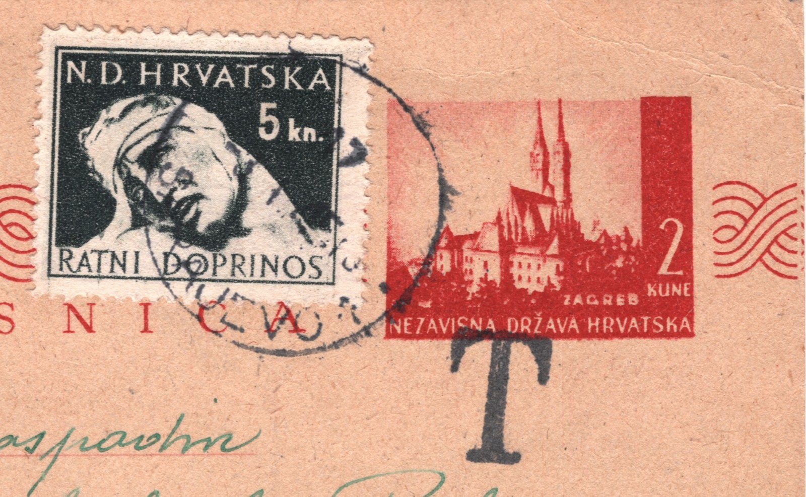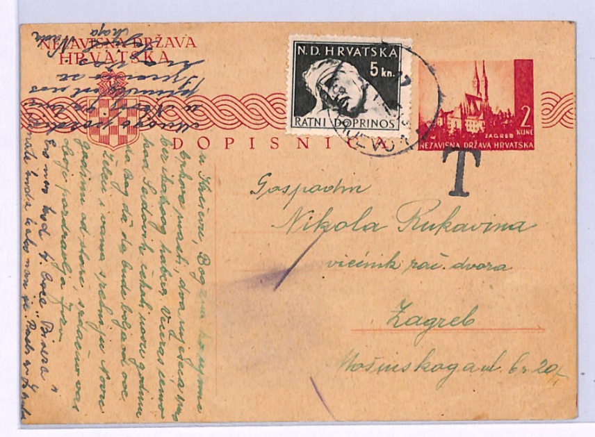 CROATIA NDH WW2 5k Uprated 2k Stationery Card *Sarajevo* TAXE 1944 Zagreb XV238