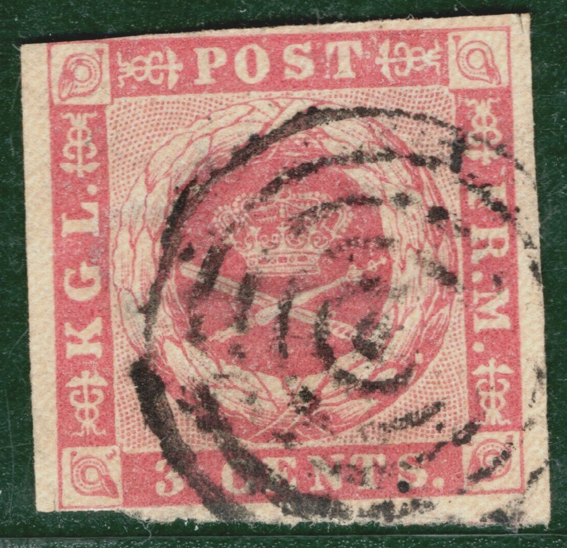 Denmark Cols DANISH WEST INDIES Classic *DWI* Stamp 3c ARMS (1856)Used Concentric Rings Cancel YELLOW217