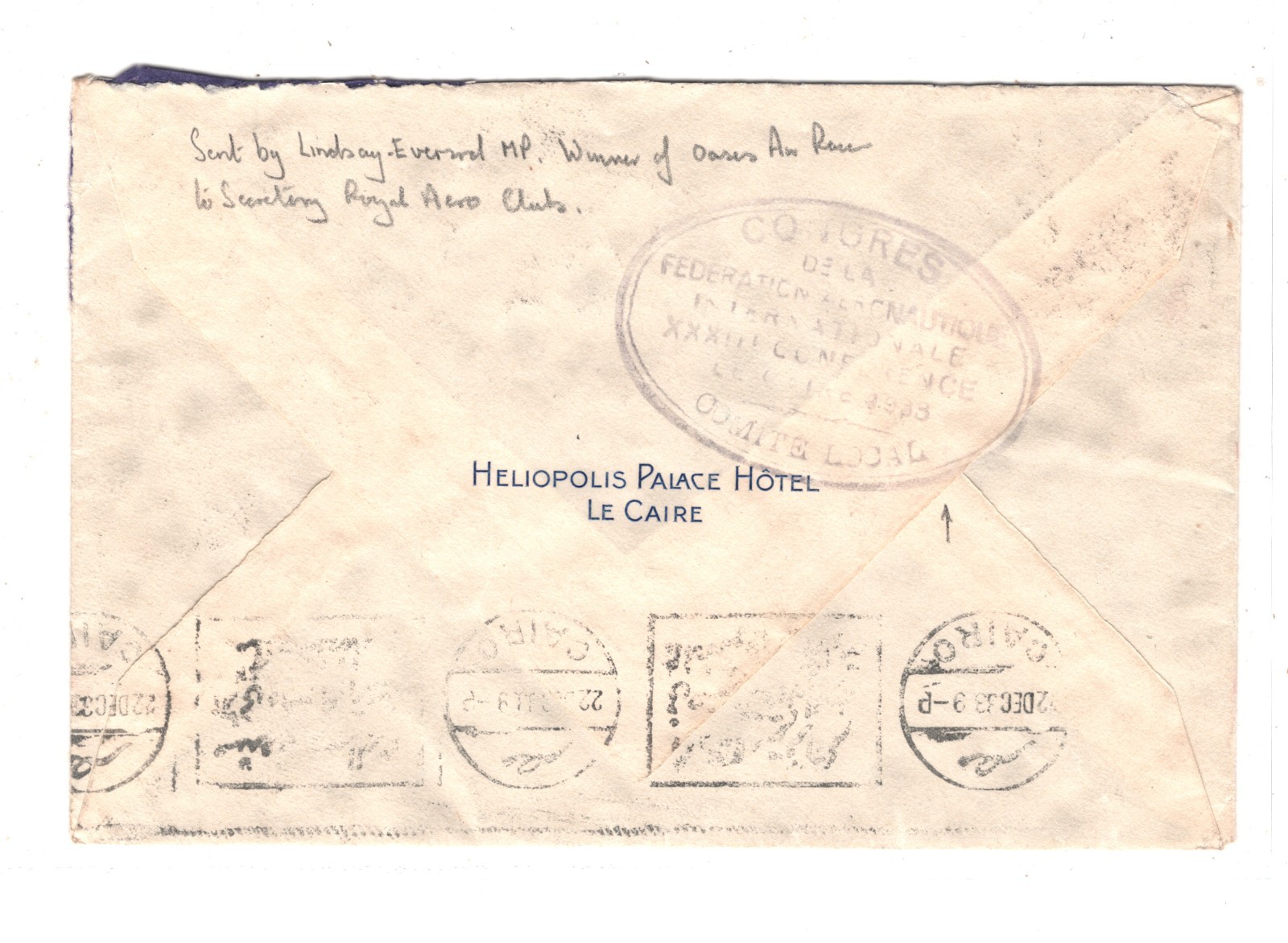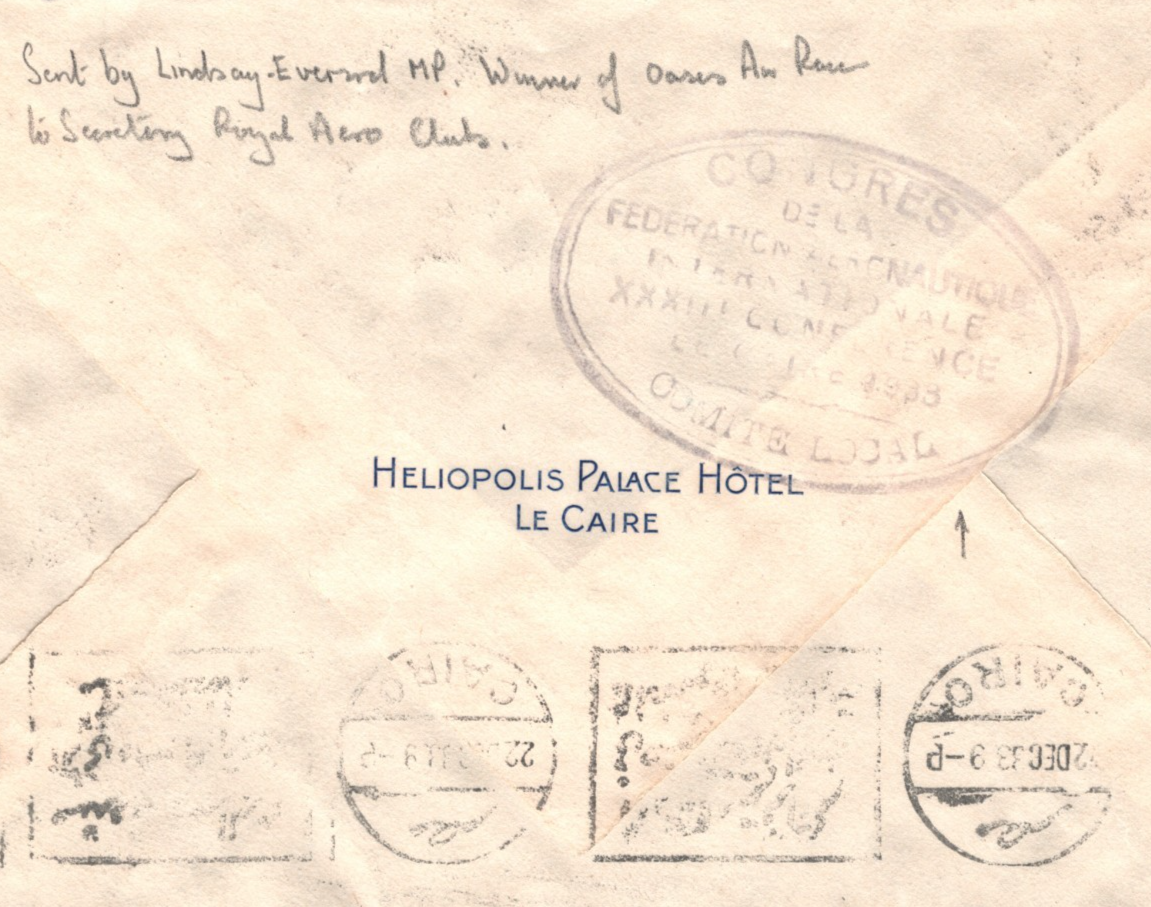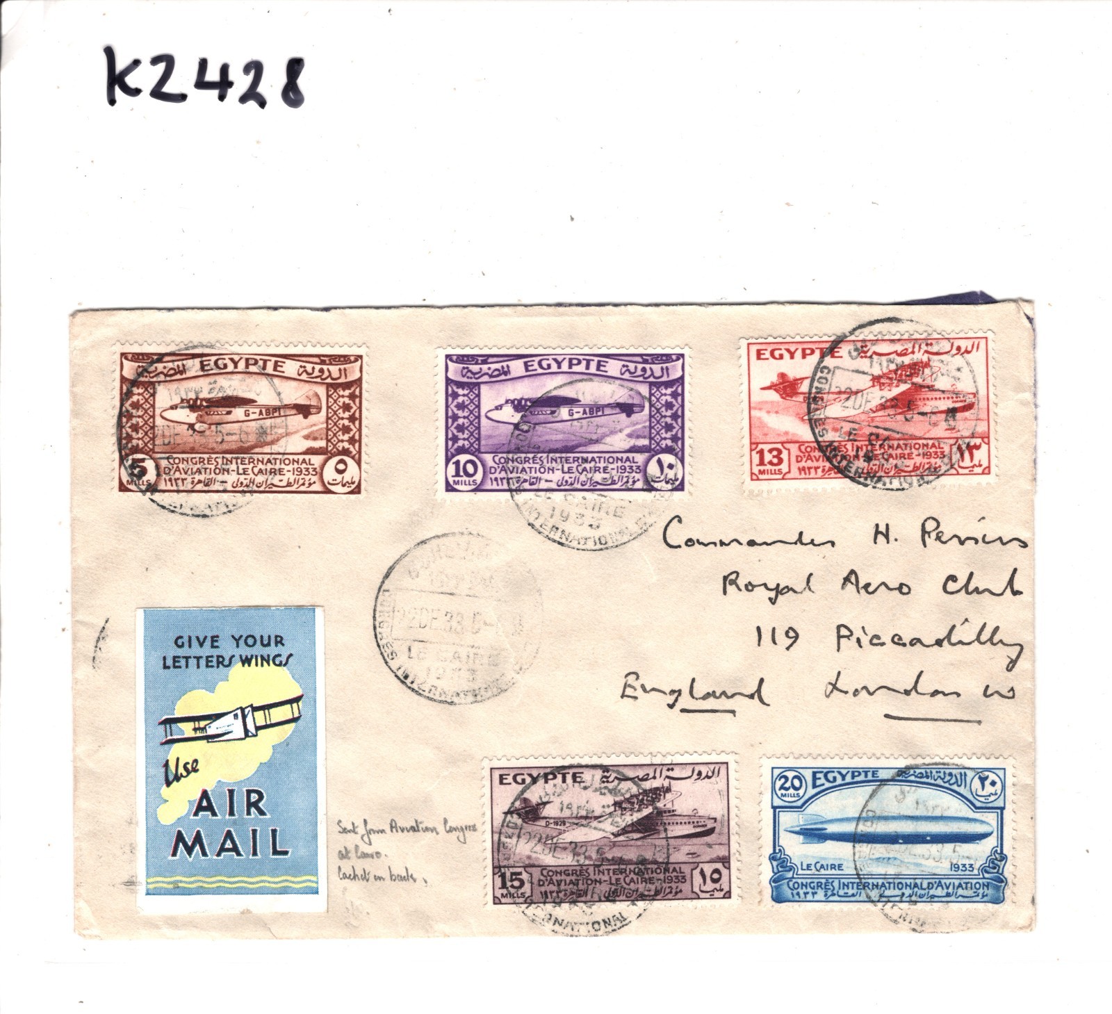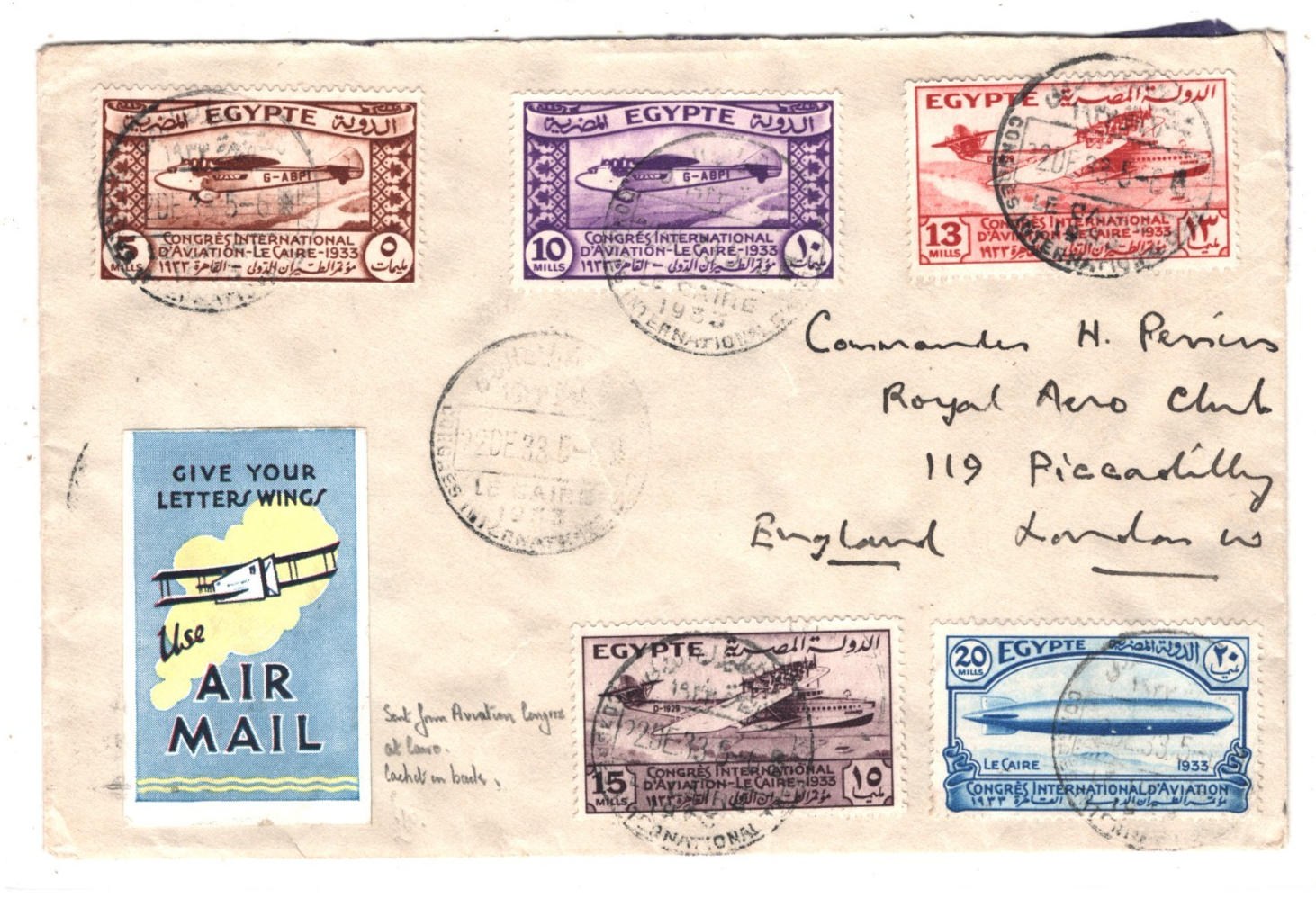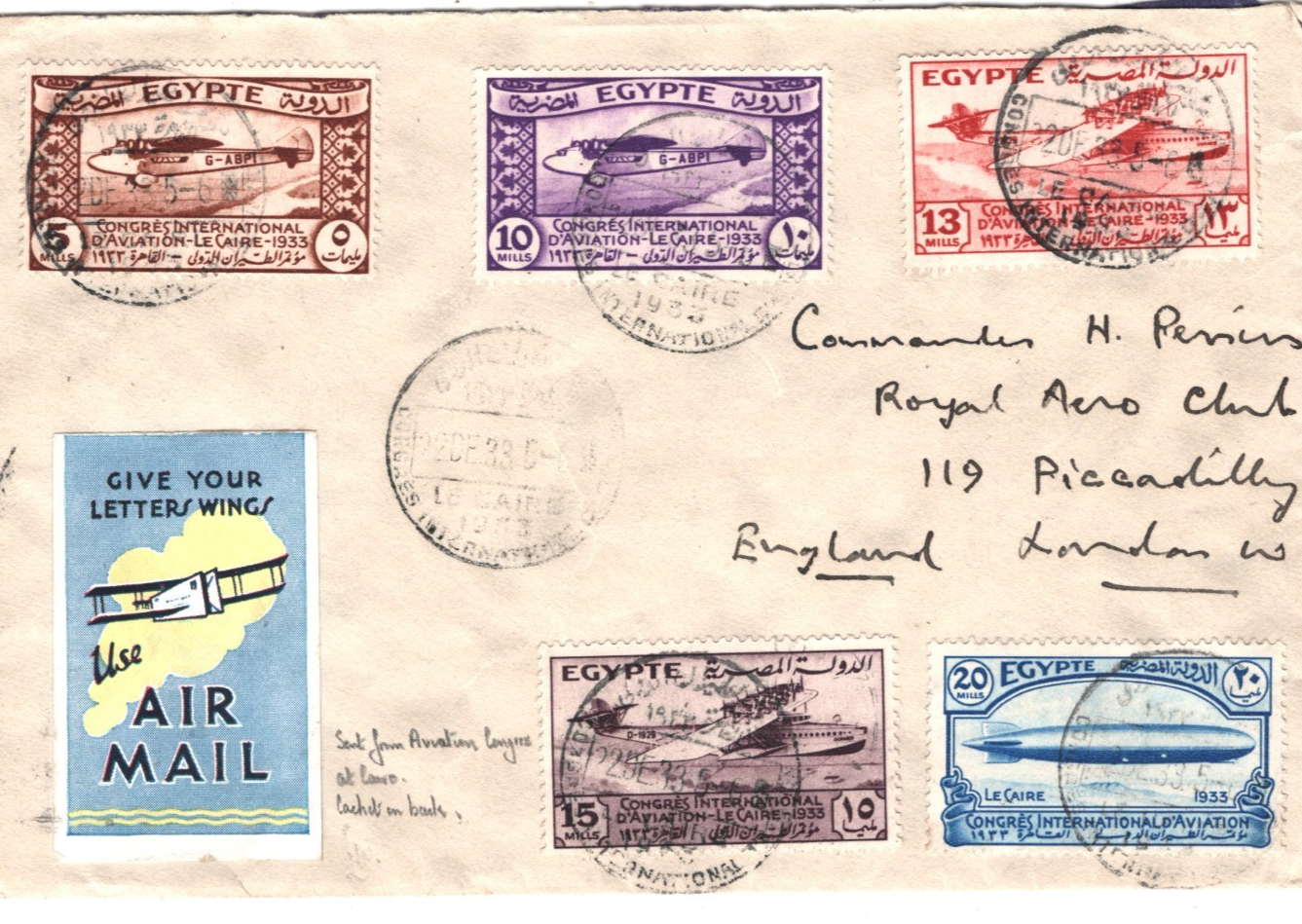 EGYPT 20m ZEPPELIN Cover 1933 AVIATION CONGRESS CDS Set *ROYAL AERO CLUB* KZ428