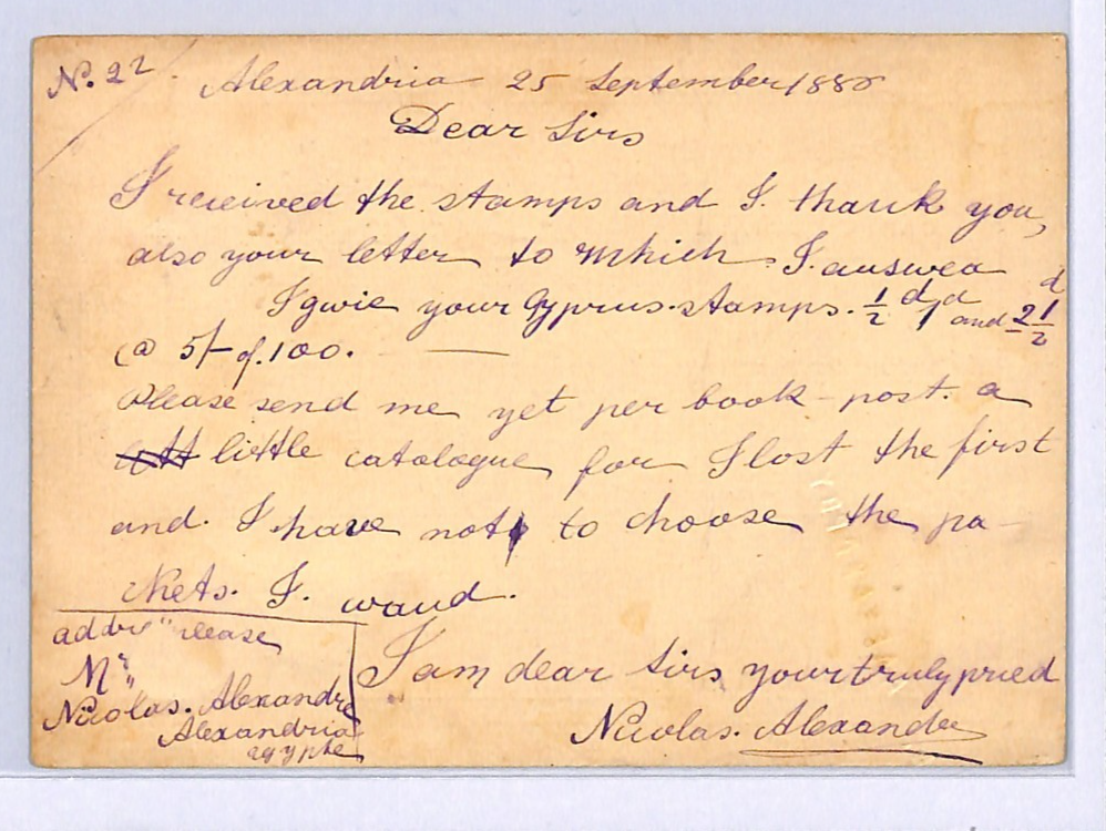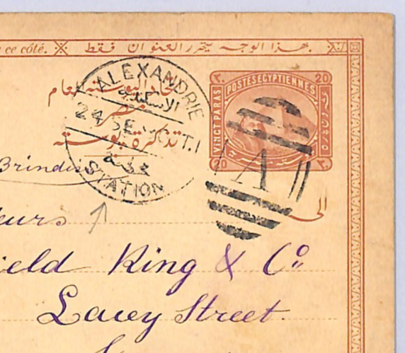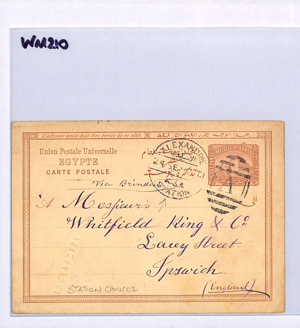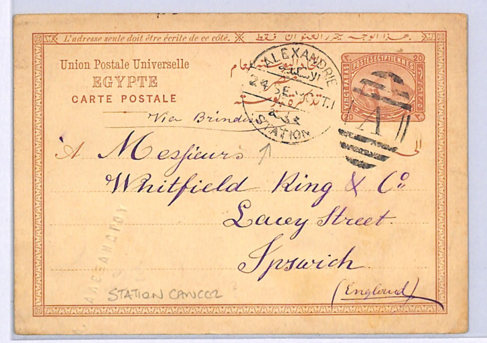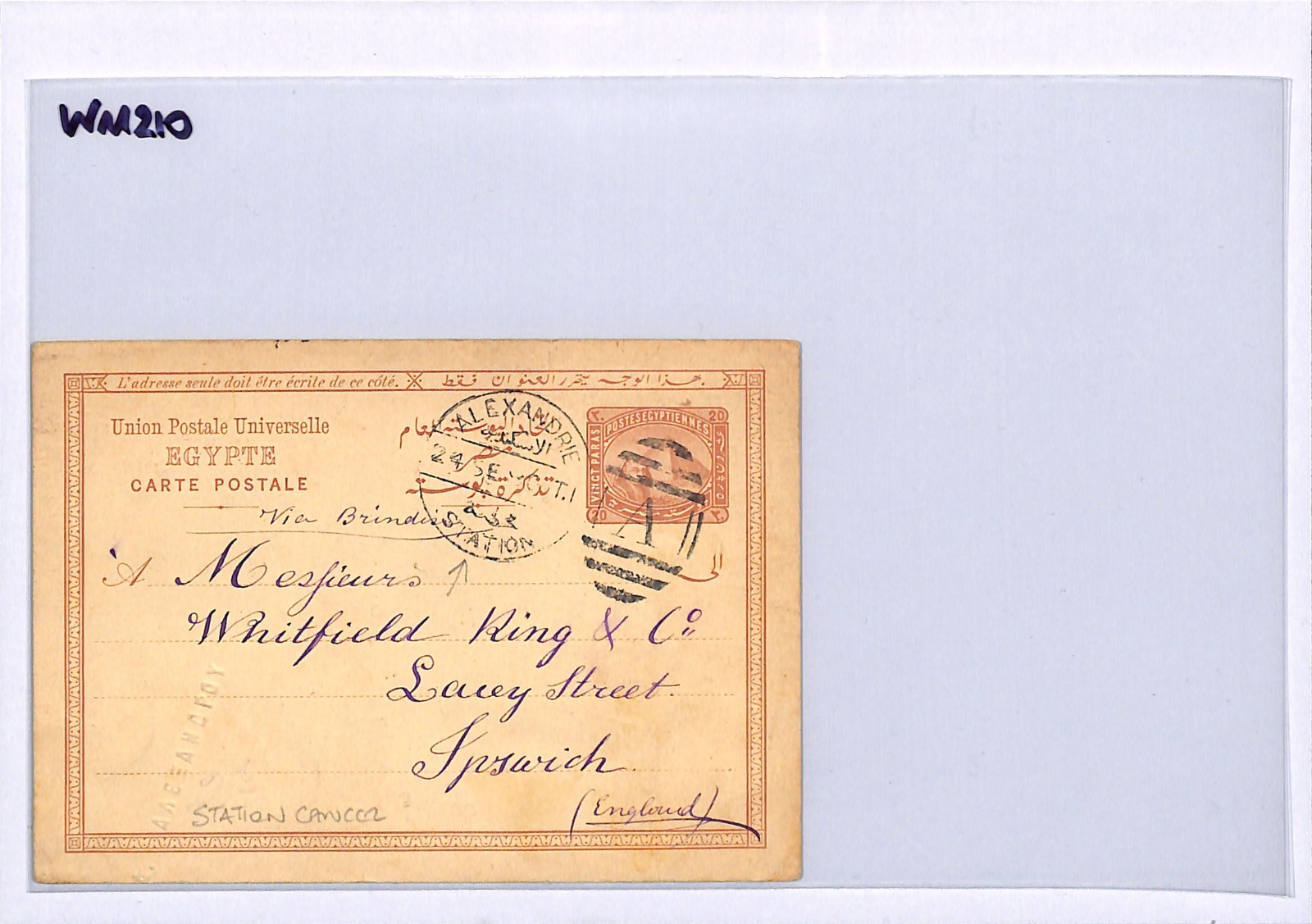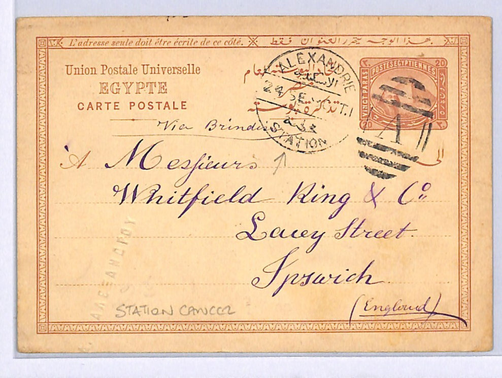 EGYPT RAILWAY MAIL Pyramids Card *ALEXANDRIA STATION* Duplex 1880 Ipswich GB Philatelic Dealer re CYPRUS Stamps PHILATELY WM210