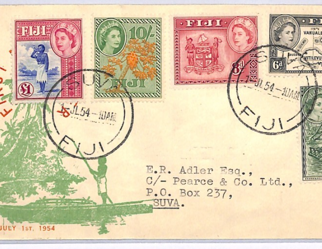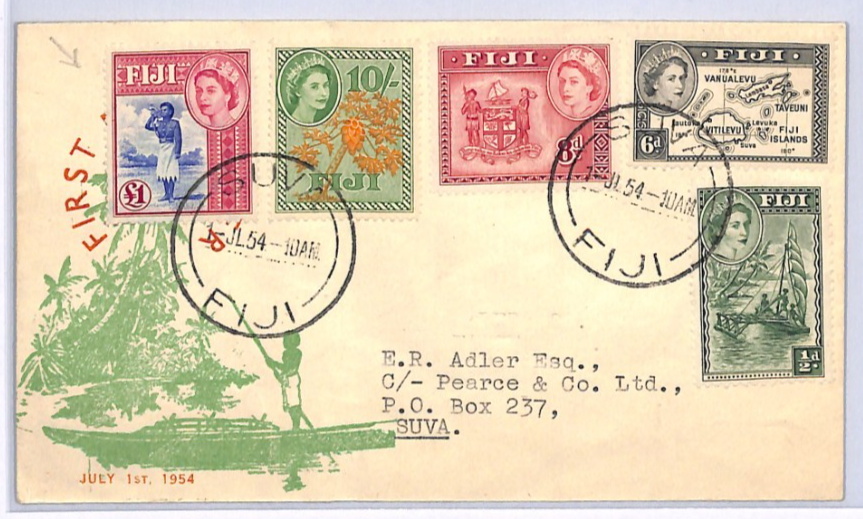 FIJI 1954 *Illustrated* FDC QEII £1 10s HIGH VALUES First Day Cover POLICE XH330