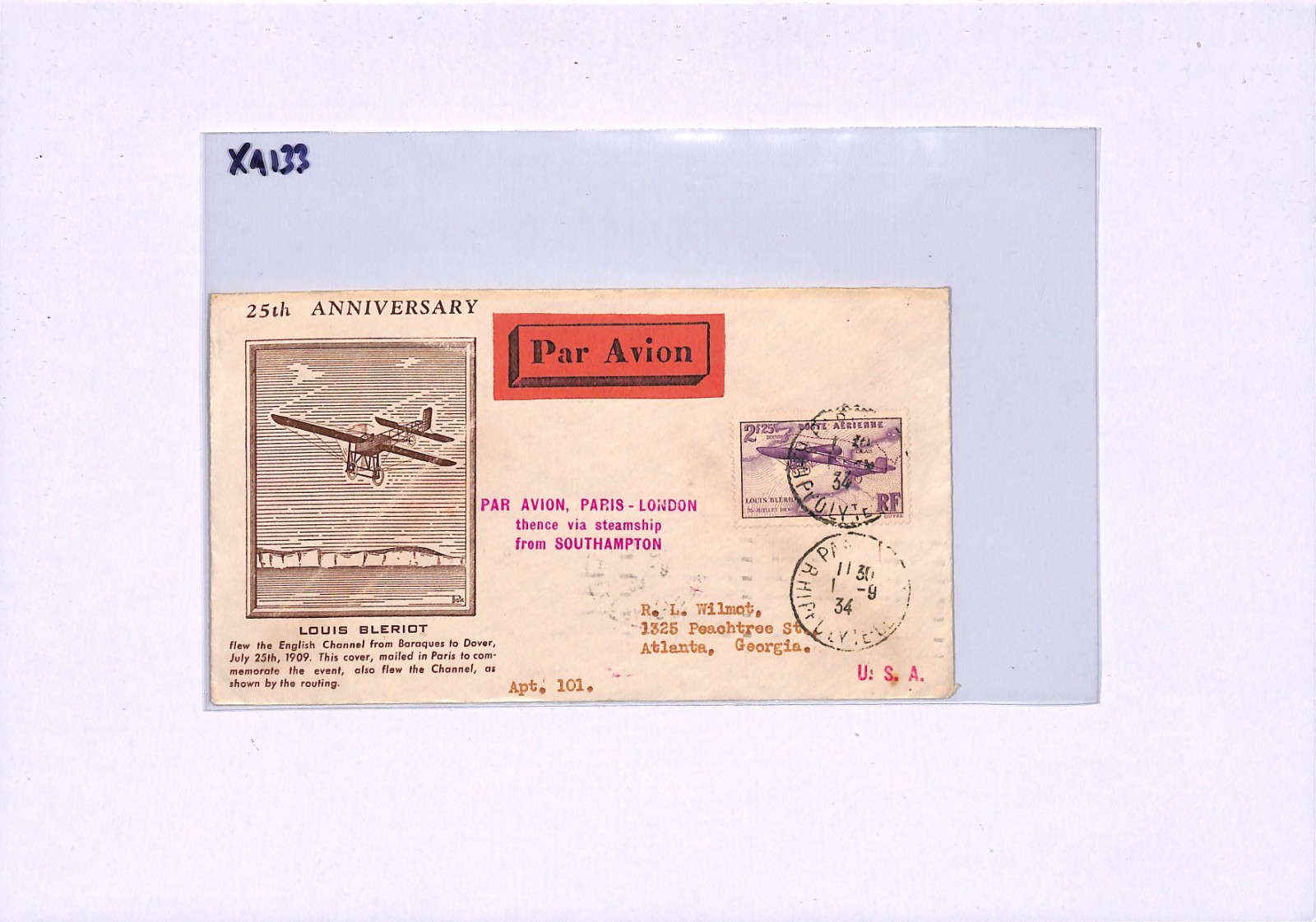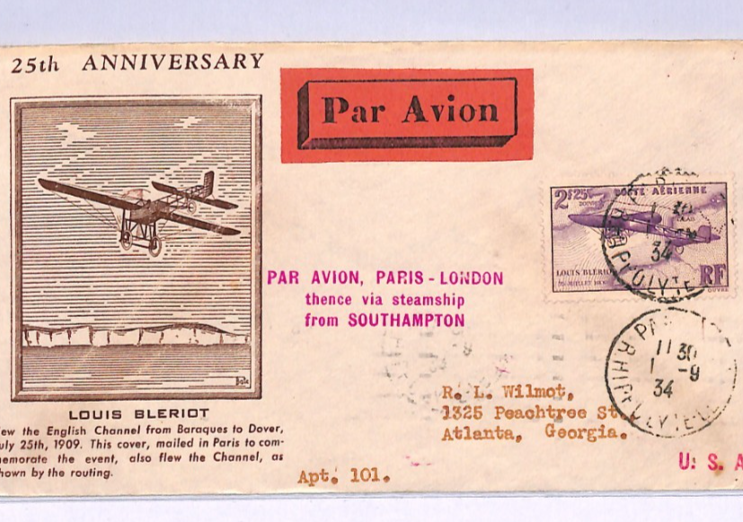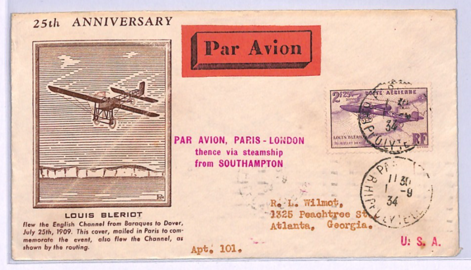FRANCE 1934 FDC Air Mail 2f *Bleriot* ILLUSTRATED First Day Cover Paris London {samwells}XA133