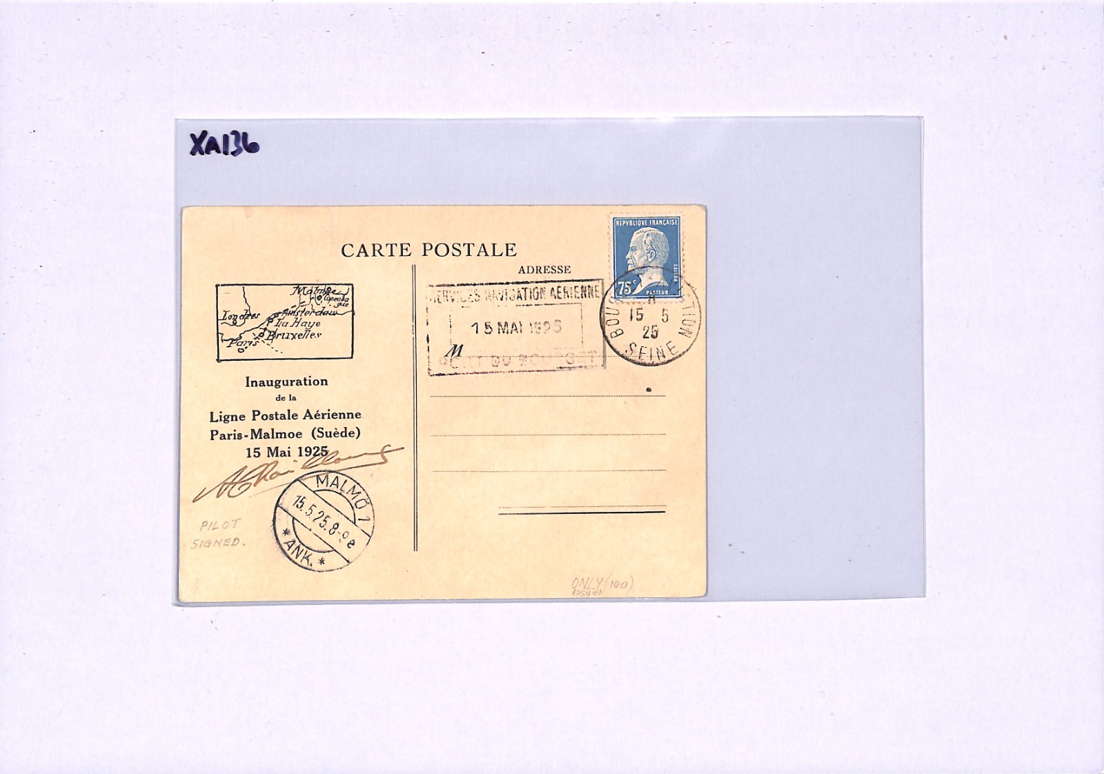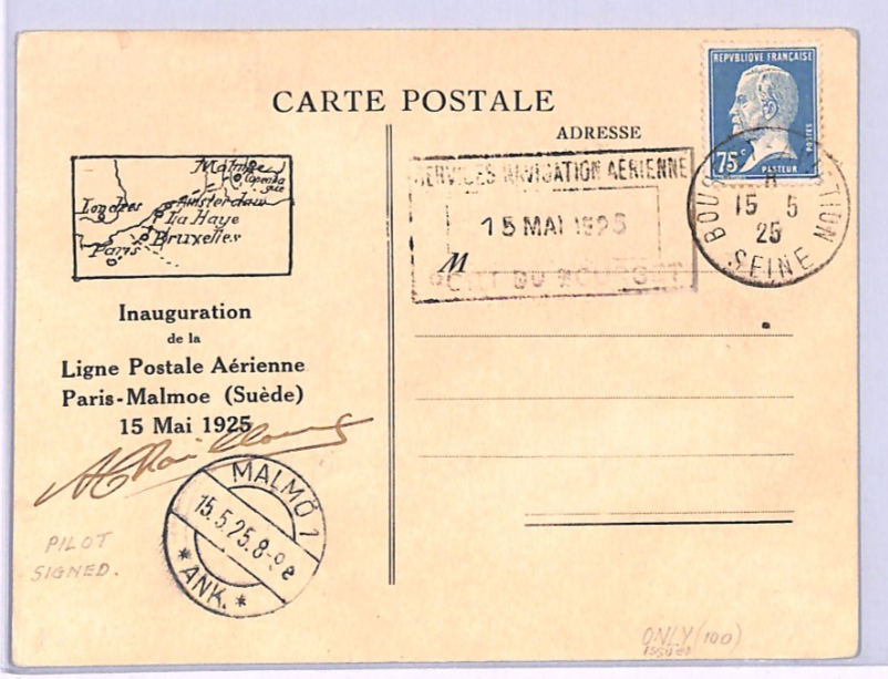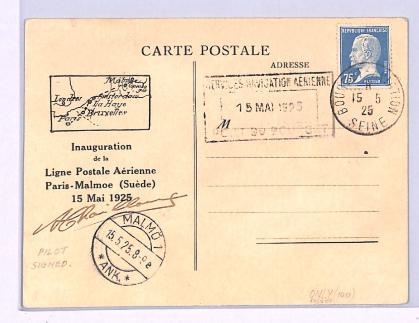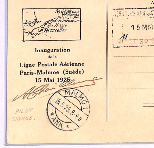 FRANCE Air Mail 1925 Card FIRST FLIGHT Malmo PILOT *Chailloux* SIGNED Rare XA136
