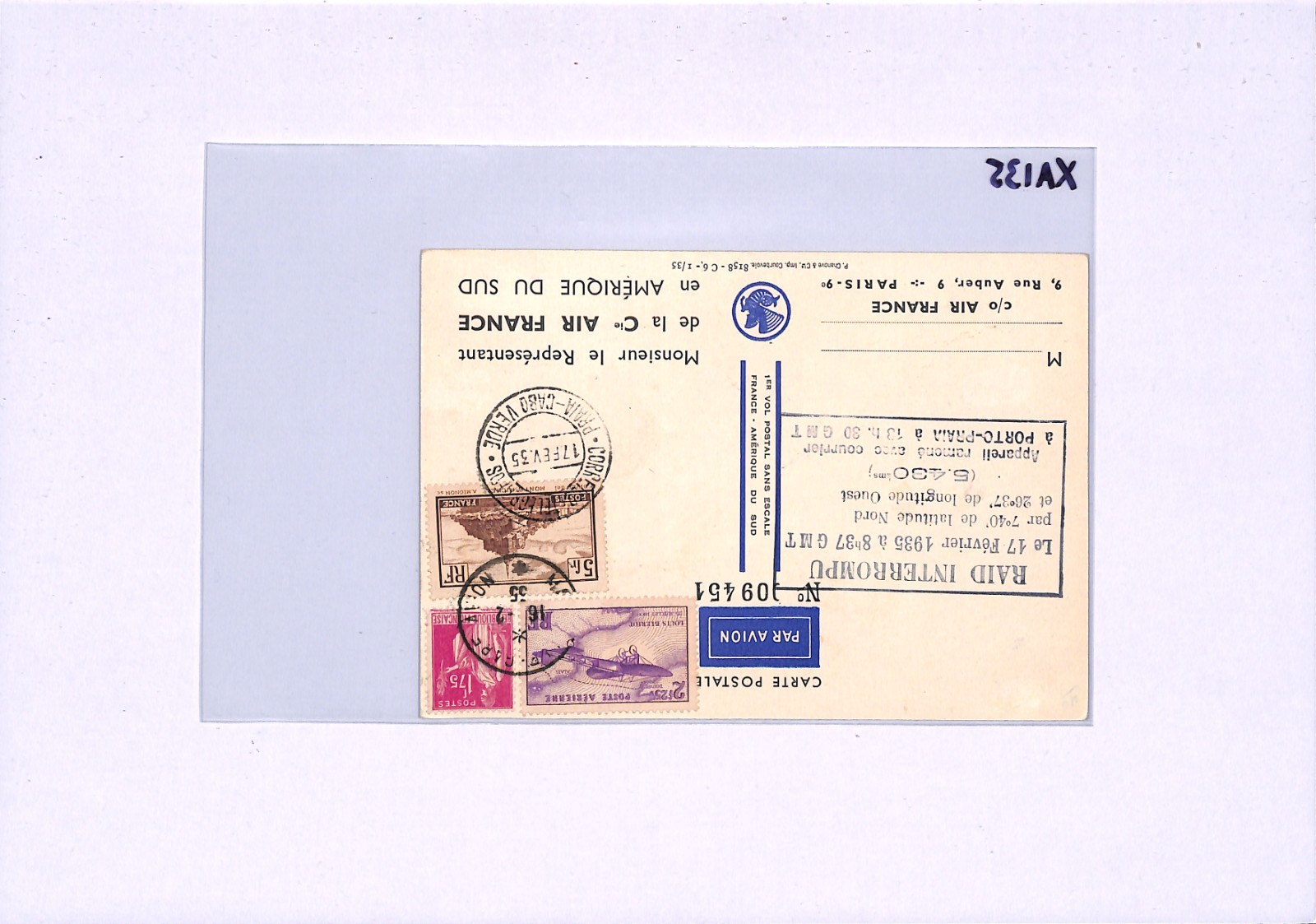 FRANCE Air Mail Card AIR FRANCE RAID INTERROMPU Non Stop Flight BRAZIL XA135