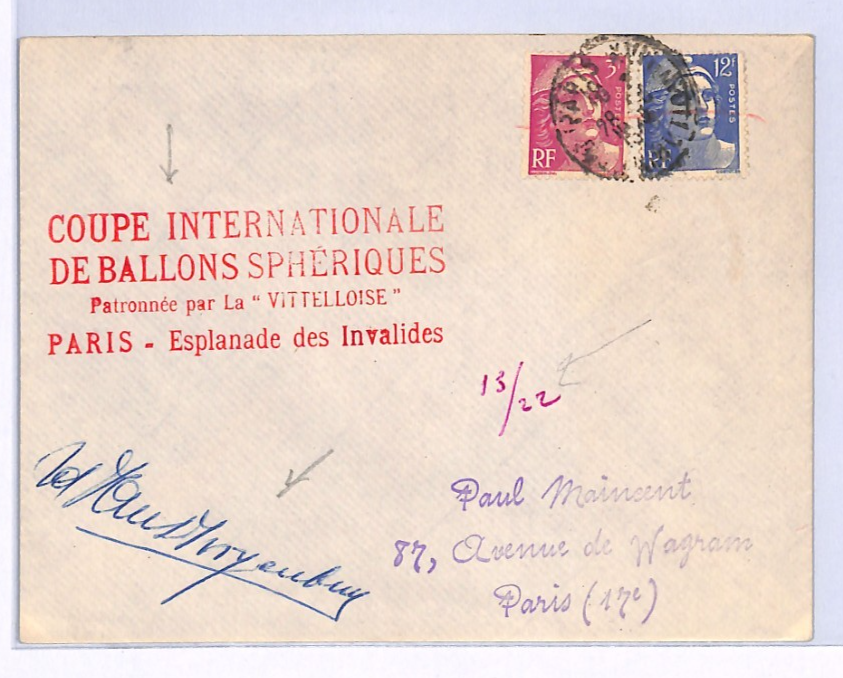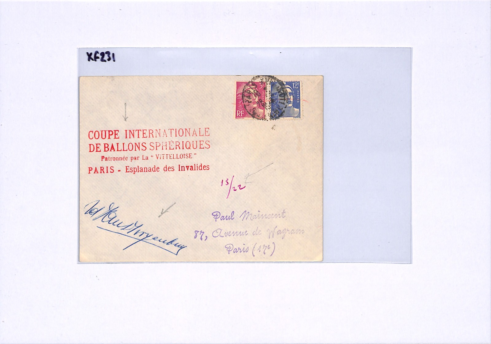 FRANCE Air Mail Cover INTERNATIONAL BALLOON CUP Vittelloise Pilot Signed? XF231
