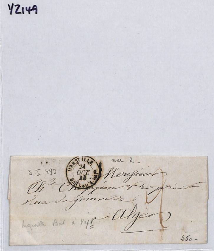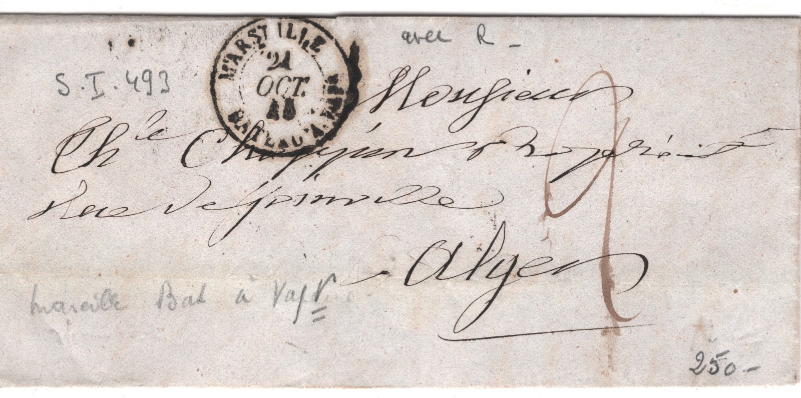 FRANCE Cover Marseille 1848? Algeria {samwells-covers}YZ149
