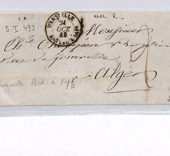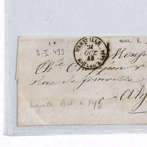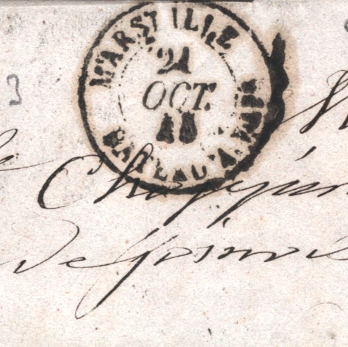 Note *BATEAU-A-VAP/MARSEILLES* CDS. Super strike. SCARCE STEAM-SHIP POSTMARK. Fine/Very Fine for an item of this type & period. Please look at all the scans to help form your own opinion (WAF).