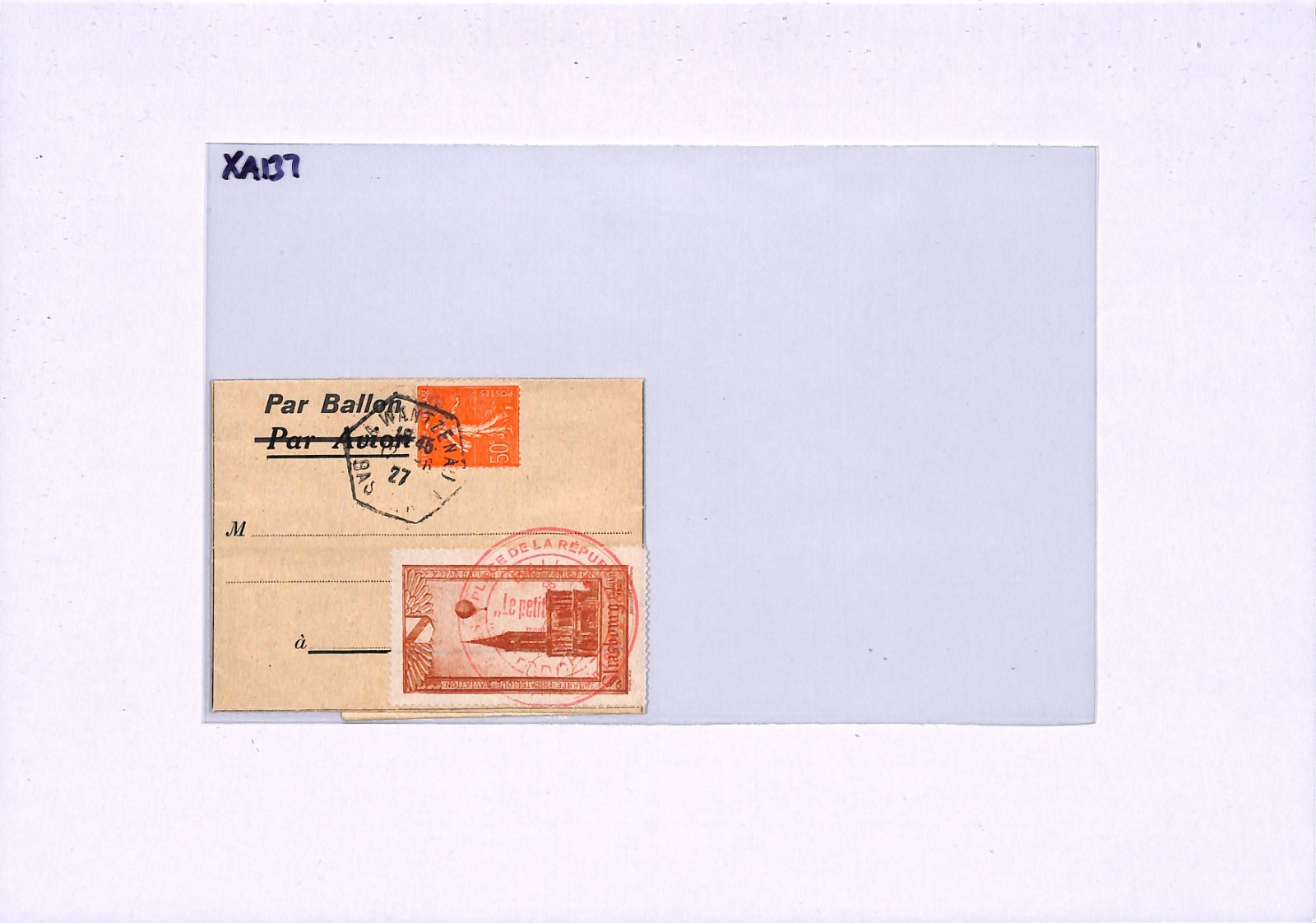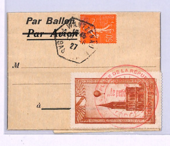 FRANCE BALLOON MAIL Card 1927 LE PETIT PARISIEN Strasbourg Wantzenau Wrapper XA137