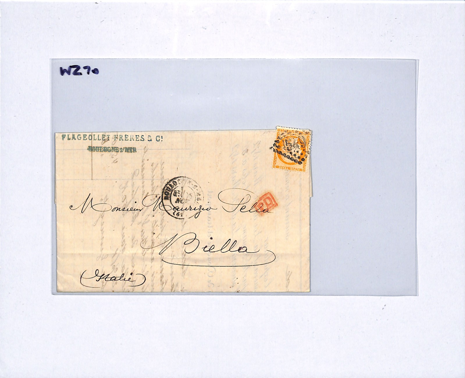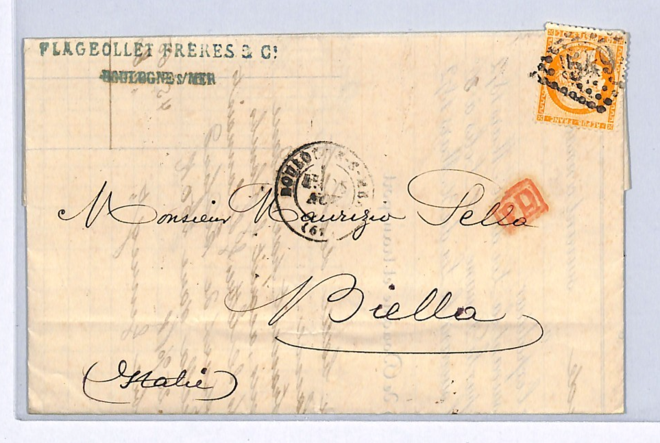 FRANCE Classic Cover 40c Boulogne *FORWARDING AGENT* Letter 1870 Biella WZ70